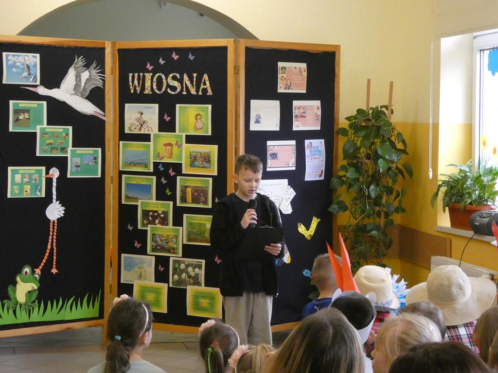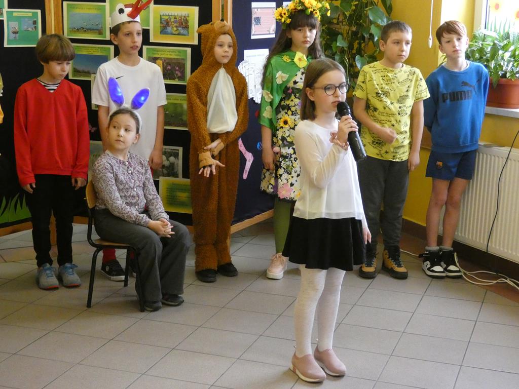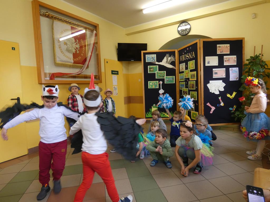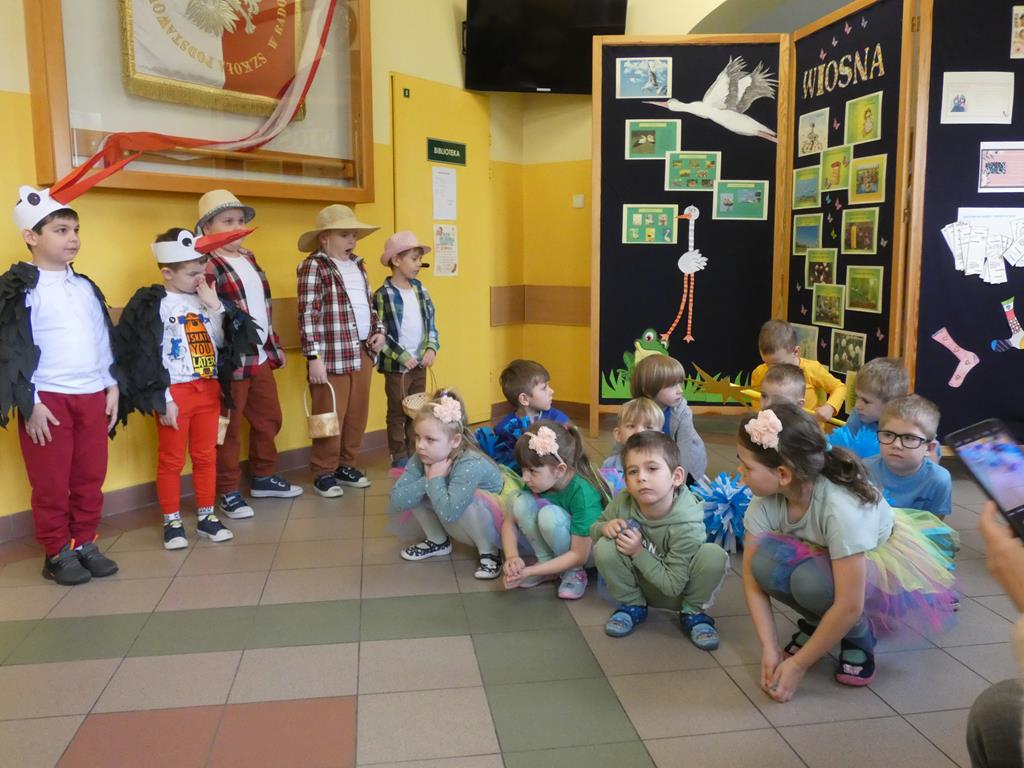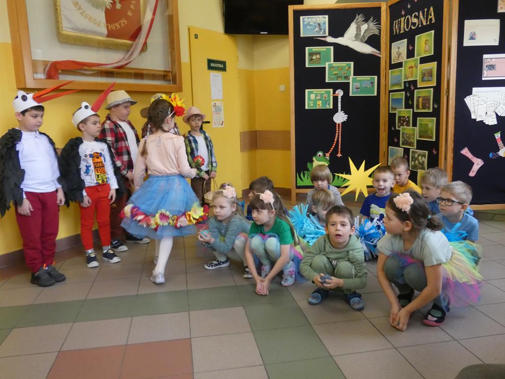 Pierwszy dzień wiosny zachwyca wszystkich, ponieważ rodzi się coś najcenniejszego, ŻYCIE. W naszej szkole pożegnanie z zimą i powitanie wiosny odbyło się w poniedziałek 20.03.2023 r. Z tej okazji uczniowie z koła aktorskiego pod opieką Pani Magdaleny Lewartowskiej przygotowały montaż słowno – muzyczny oraz piosenkę . Najmłodsi, czyli dzieci z oddziałów przedszkolnych w bardzo innowacyjny sposób przedstawiły powitanie wiosny w tańcu do utworu Antonio Vivaldiego - ,, Wiosna . Po występach artystycznych cała społeczność szkolna zebrała się przed budynkiem szkolnym , aby z Marzanną - słomianą kukłą przejść na boisko gdzie rozpoczęło się uroczyste powitanie wiosny. Dzieci powróciły do swoich klas z szerokim uśmiechem i nadzieją, że wreszcie zawitała tak upragniona wiosna.