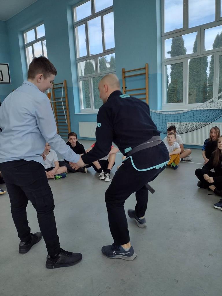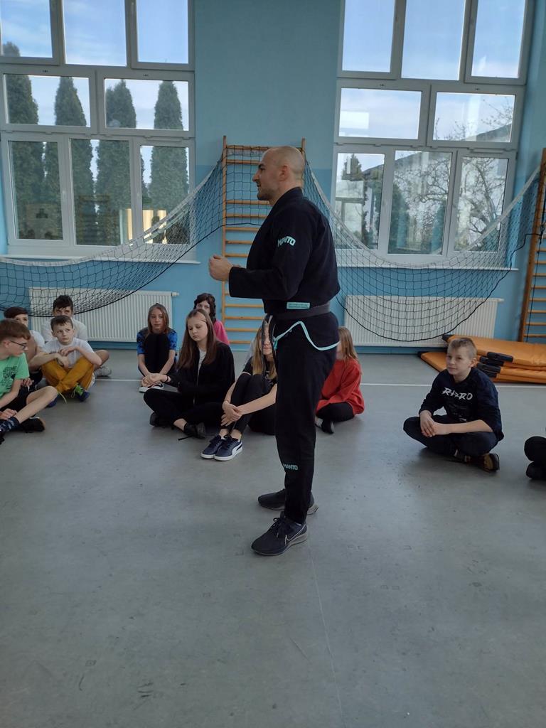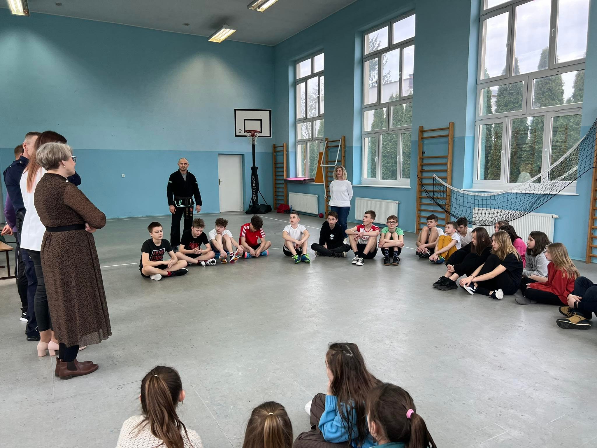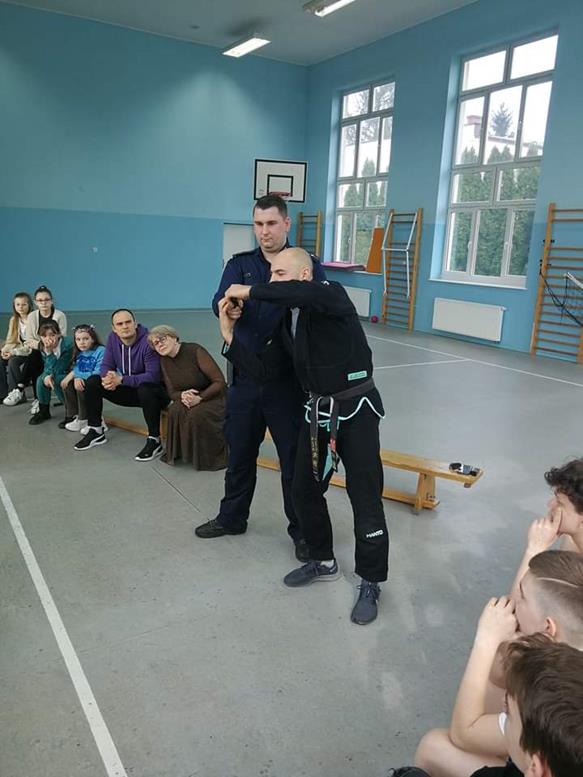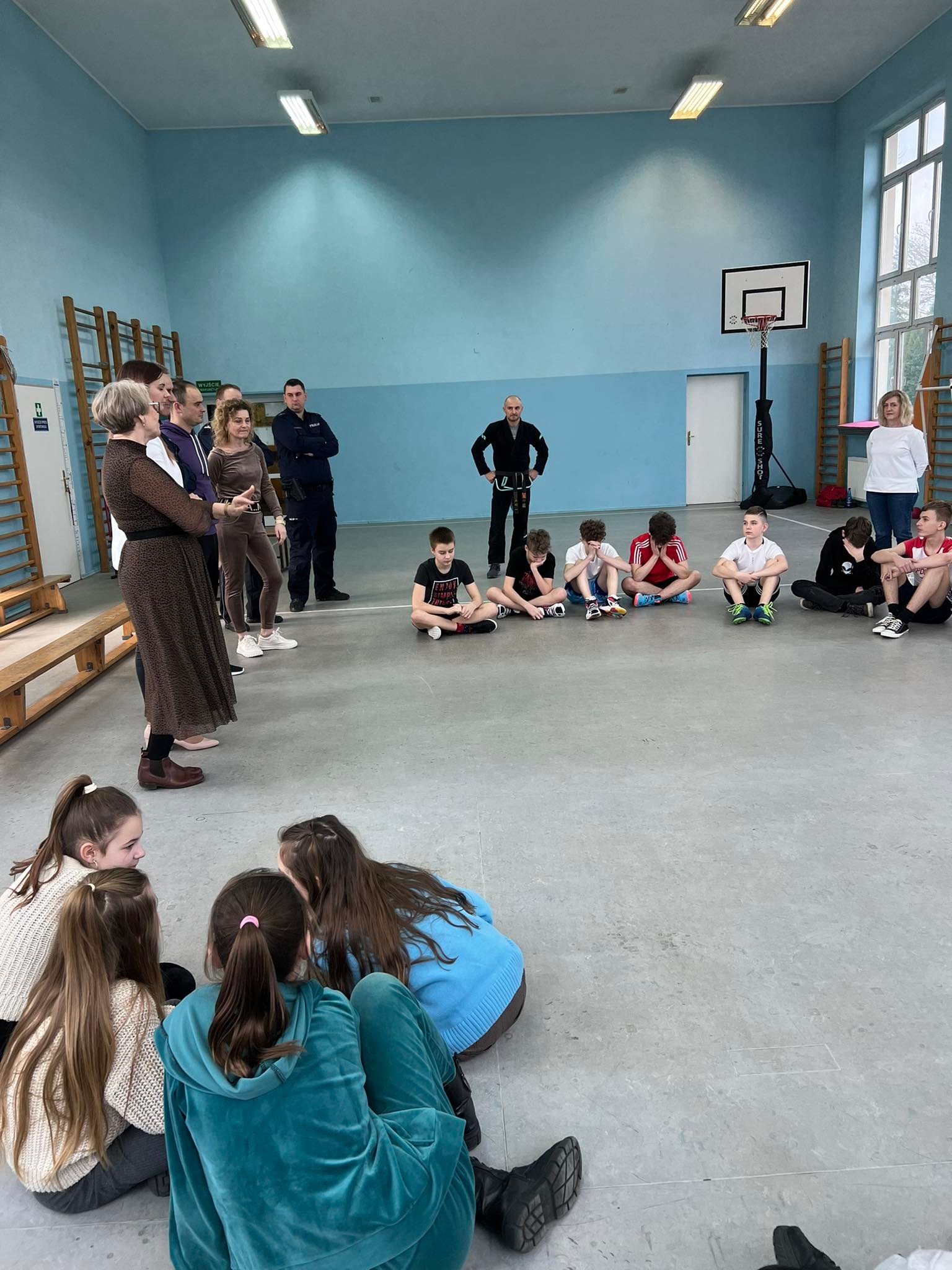 W tym dniu uczniowie klasy VI, VII i VIII wysłuchali pogadanek profilaktycznych, które wygłosili: Dyrektor Biblioteki w Golinie – Pani Żanetta Matlewska, Dzielnicowi z Komisariatu Policji w Golinie – Pan Błażej Borowiec i Pan Mateusz Grymuza na czele z Komendantem Panem Markiem Wojdyńskim. Uczestnicy projektu poznali podczas prelekcji filmowej historię Michaliny uzależnionej od narkotyków i dopalaczy, a także wzięli udział w aktywizujących zajęciach z samoobrony na sali gimnastycznej, które poprowadził instruktor Ju – Jitsu Pan Michał Radziemski.