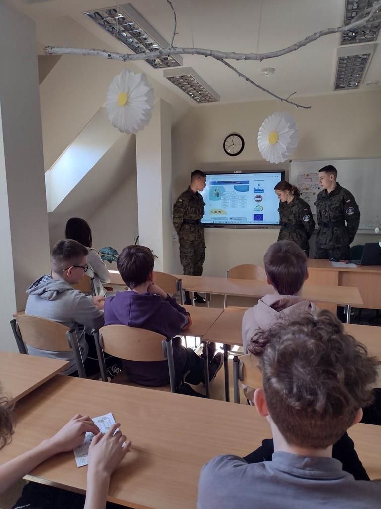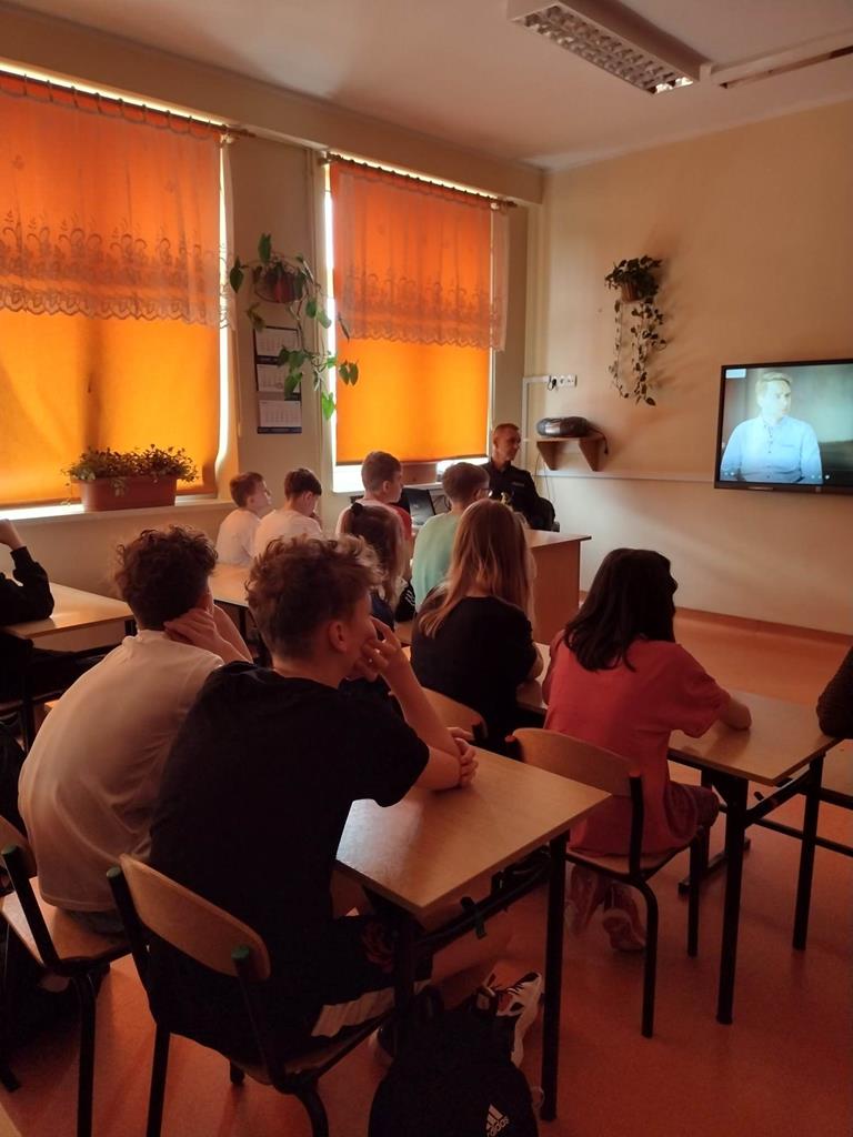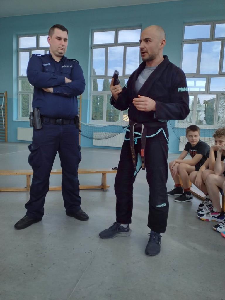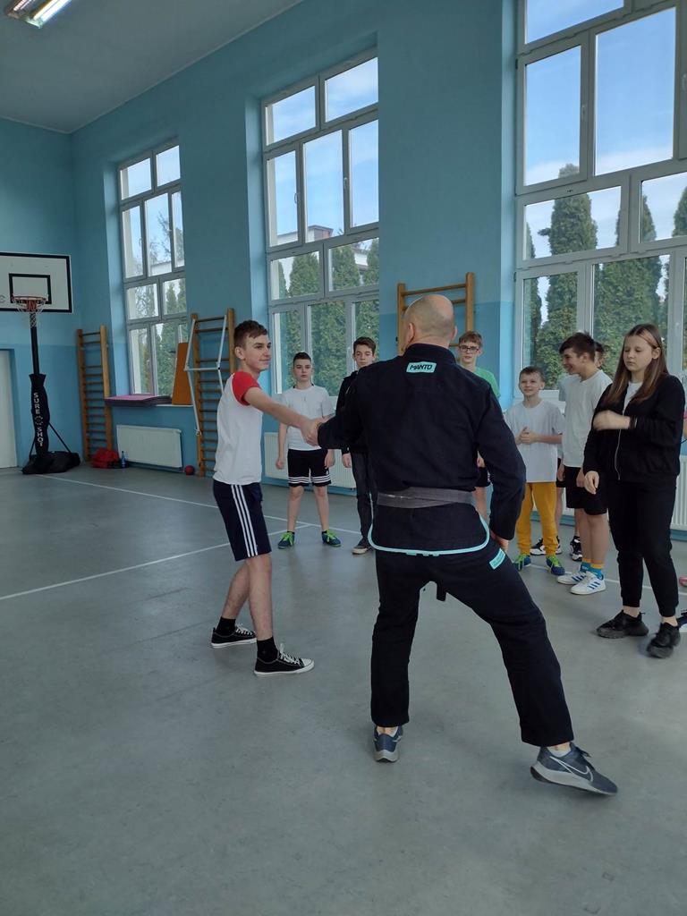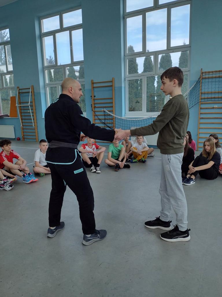 W tym dniu uczniowie klasy VI, VII i VIII wysłuchali pogadanek profilaktycznych, które wygłosili: Dyrektor Biblioteki w Golinie – Pani Żanetta Matlewska, Dzielnicowi z Komisariatu Policji w Golinie – Pan Błażej Borowiec i Pan Mateusz Grymuza na czele z Komendantem Panem Markiem Wojdyńskim. Uczestnicy projektu poznali podczas prelekcji filmowej historię Michaliny uzależnionej od narkotyków i dopalaczy, a także wzięli udział w aktywizujących zajęciach z samoobrony na sali gimnastycznej, które poprowadził instruktor Ju – Jitsu Pan Michał Radziemski.