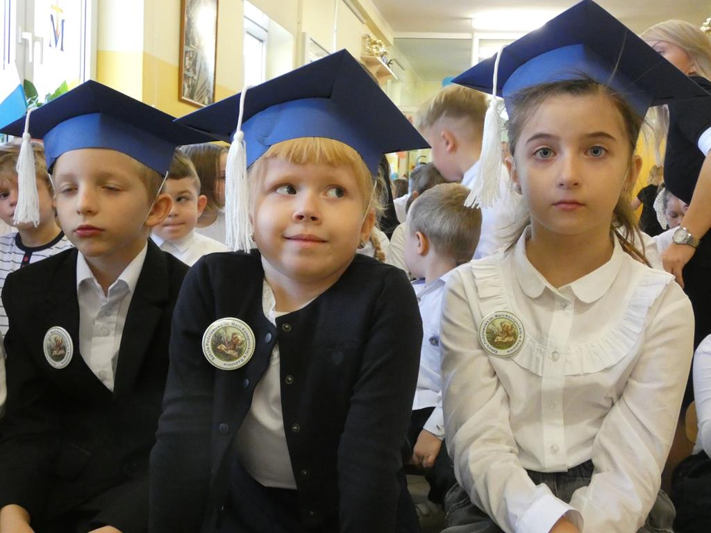 Tymi słowami 13 października b.r. pierwszaki z naszej szkoły złożyli uroczyste ślubowanie oraz zostali pasowani na pełnoprawnych uczniów Szkoły Podstawowej im. M. Konopnickiej w Radolinie. W tej ważnej chwili naszym małym bohaterom towarzyszyli: cała społeczność uczniowska, Grono Pedagogiczne oraz rodzice, a także zaproszeni goście: zastępca burmistrza pani Anna Paszek, ksiądz proboszcz Andrzej Czubaszewski, emerytowani nauczyciele: pani Zofia Szota i pani Aleksandra Chojnacka. Pierwszoklasiści przedstawili swoje umiejętności artystyczne w krótkim montażu słowno- muzycznym. Wśród uczniów powitali ich również starsi koledzy z klasy VIII, wręczając drobne upominki, a także przewodnicząca Rady Rodziców pani Aleksandra Gauza. Dyrektor szkoły pani Alina Kozłowska podziękowała małym bohaterom, a rodzicom i wychowawczyni życzyła wielu sukcesów, zadowolenia z dzieci i owocnej współpracy.
