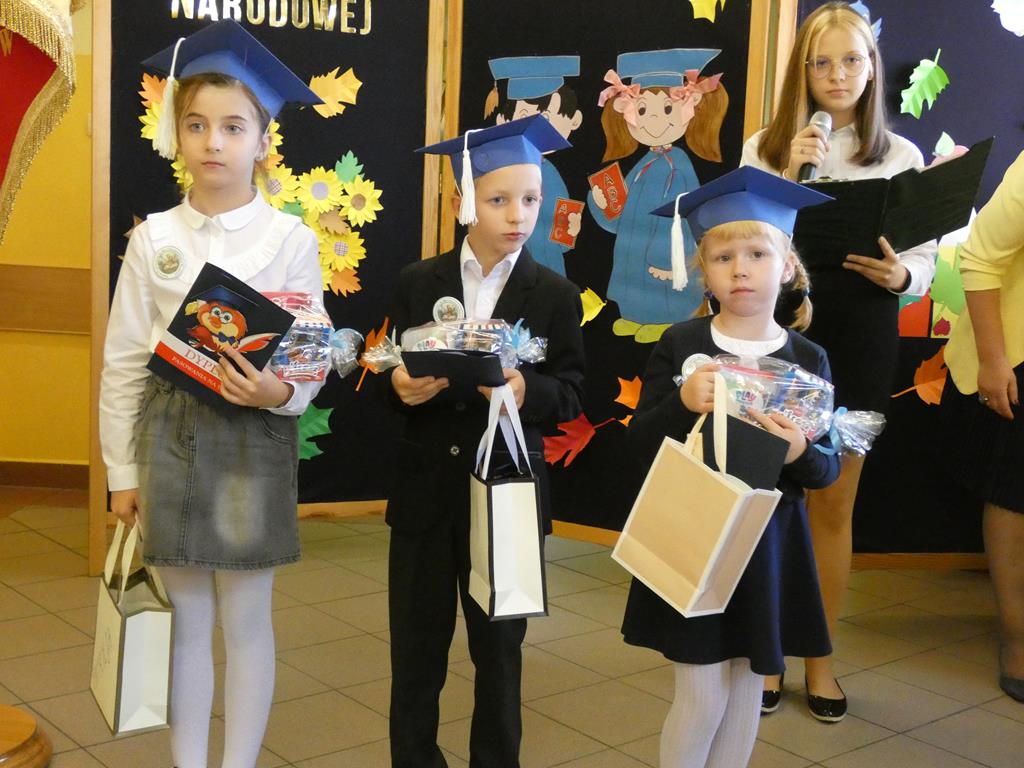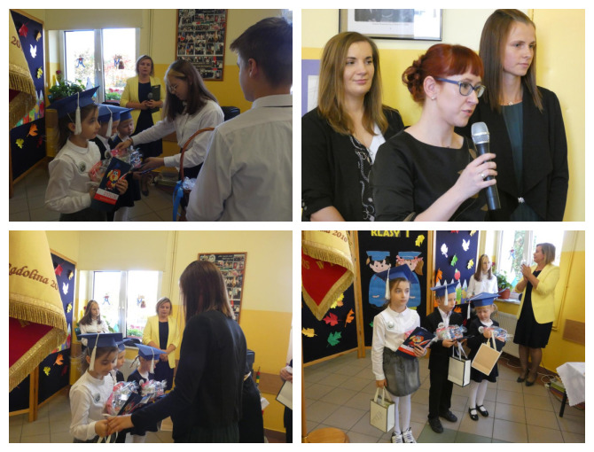 Uroczystość zakończyła się wspólną fotografią i słodkim poczęstunkiem pierwszoklasistów z nauczycielami i rodzicami.