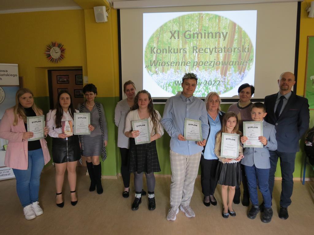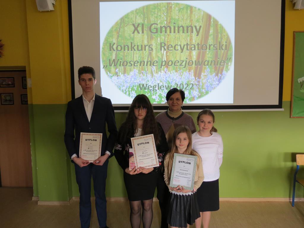 Wiosenne poezjowanie – pod tym hasłem 5 kwietnia w Szkole Podstawowej im. Stanisława Wyspiańskiego w Kawnicach odbyła się XI edycja Gminnego Konkursu Recytatorskiego. Naszą szkołę reprezentowało czworo uczniów: Dominik Czerniak, Wioletta Tyderka, Oliwia Śrutowska i Weronika Żabierek.