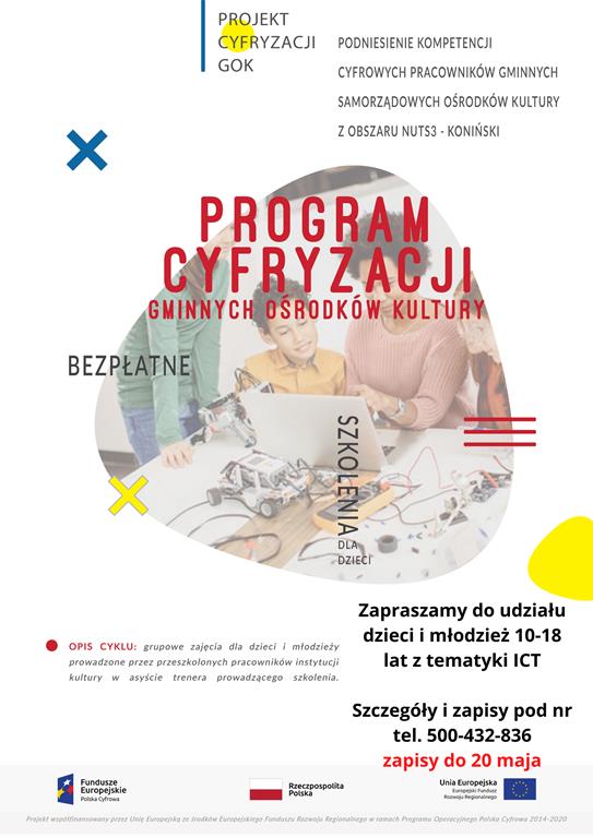 W związku z kontynuacją Projektu "Cyfryzacja Gminnych Ośrodków Kultury" II cykl dla dzieci i młodzieży rozpoczynamy rekrutację uczestników w wieku 10-18 lat.