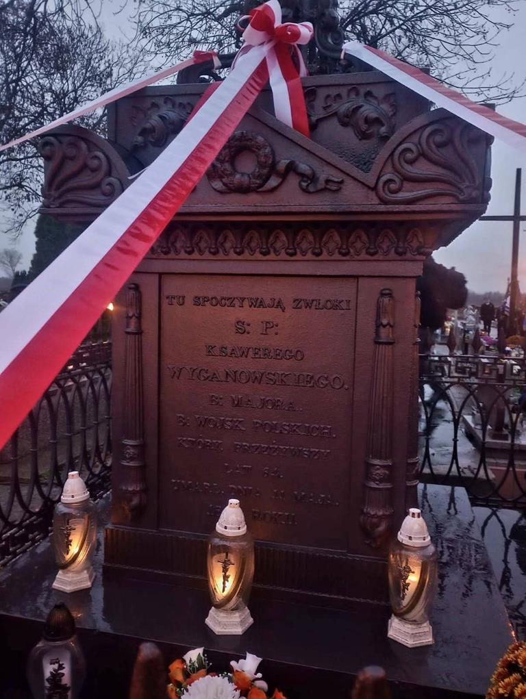 Po zakończeniu Mszy świętej uczestnicy uroczystości udali się na pobliski cmentarz pod pomnik majora Franciszka Ksawerego Wyganowskiego – bohatera powstania listopadowego, który całe swoje życie poświęcił Ojczyźnie, gdzie odbyło się uroczyste odsłonięcie oraz poświęcenie odnowionego pomnika, którego dokonał proboszcz parafii w Myśliborzu ks.A. Czubaszewski . W modlitwie przy pomniku, inspirowanej poematem „Myśląc Ojczyzna…” św. Jana Pawła II, zgromadzeni dziękowali Bogu za wolność i za tych, którzy o nią walczyli, prosząc jednocześnie o błogosławieństwo dla współczesnej Polski.