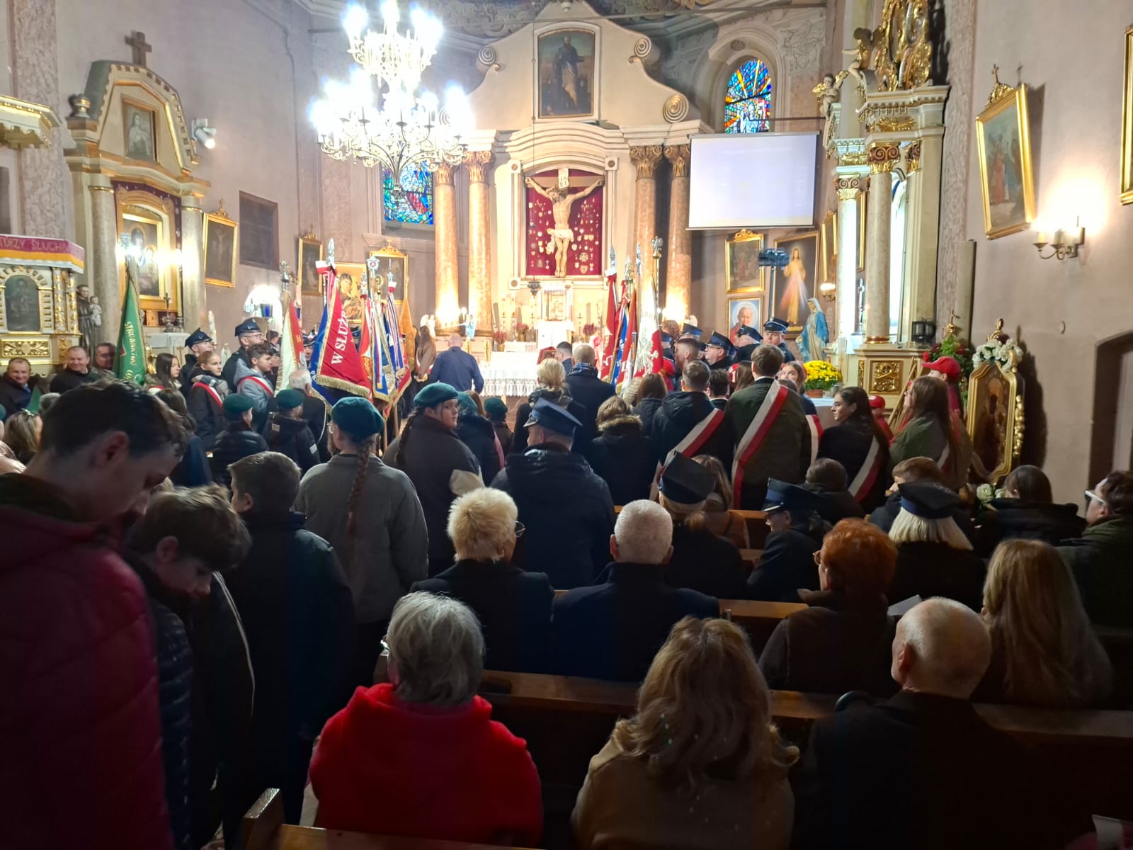 W procesji wejścia uczestniczyły poczty sztandarowe ze szkół podstawowych oraz Ochotniczych Straży Pożarnych z gminy Golina, a wspólne odśpiewanie pieśni „Rota” wprowadziło wszystkich w podniosły, patriotyczny nastrój.