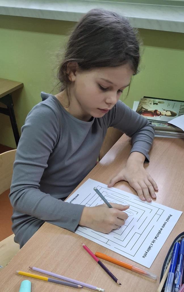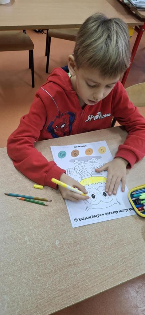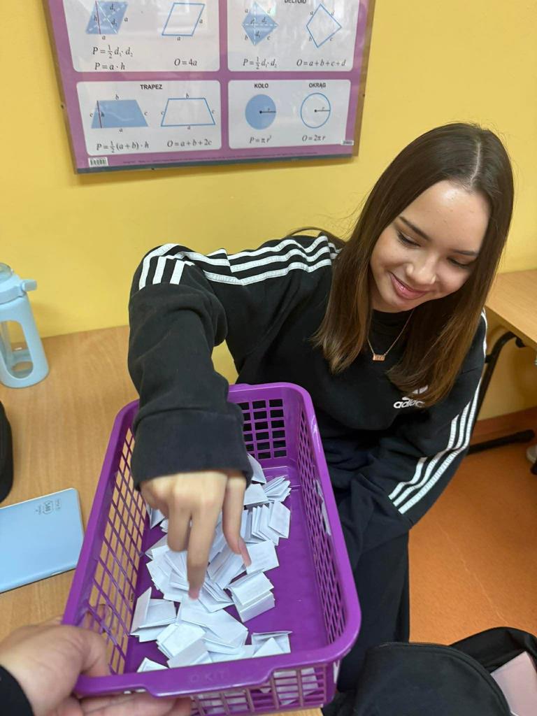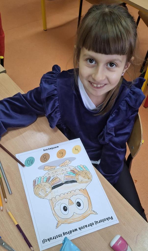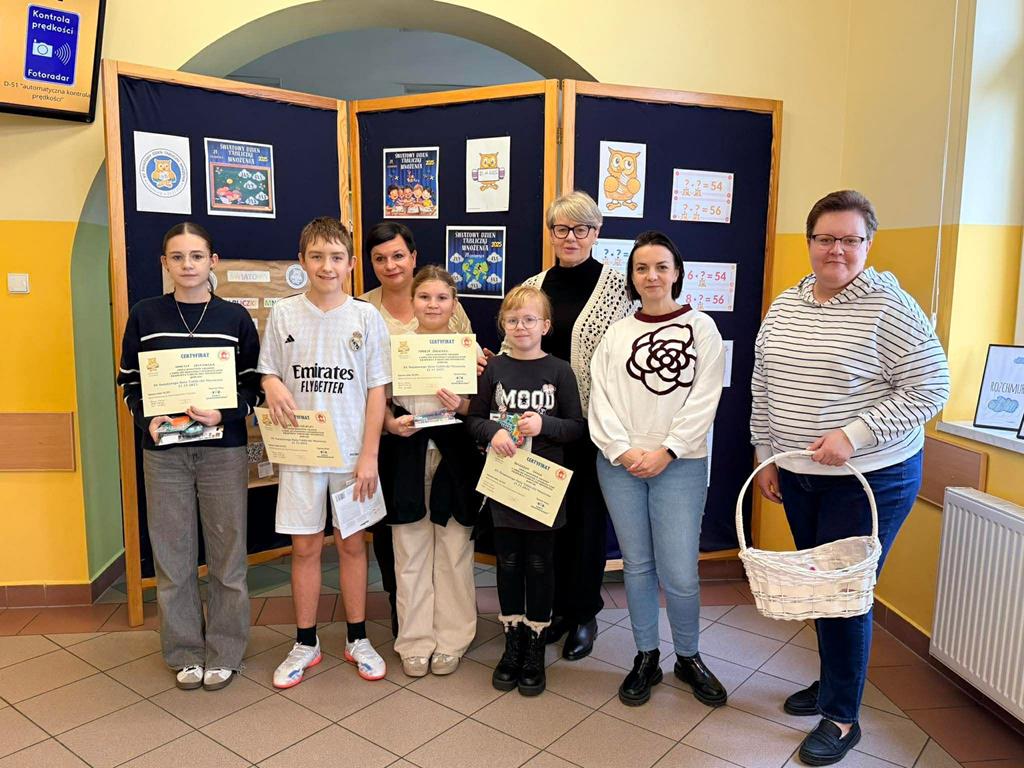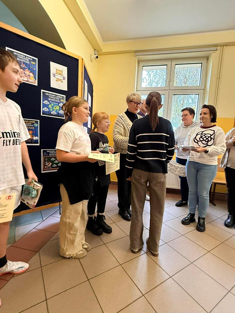 Młodsi uczniowie również aktywnie uczestniczyli w obchodach dnia – utrwalali tabliczkę mnożenia poprzez różnorodne formy zabaw: kolorowanki matematyczne, łamigłówki, zadania logiczne i krótkie quizy. Dzięki temu nauka stała się dla nich przyjemnością i okazją do twórczej aktywności.