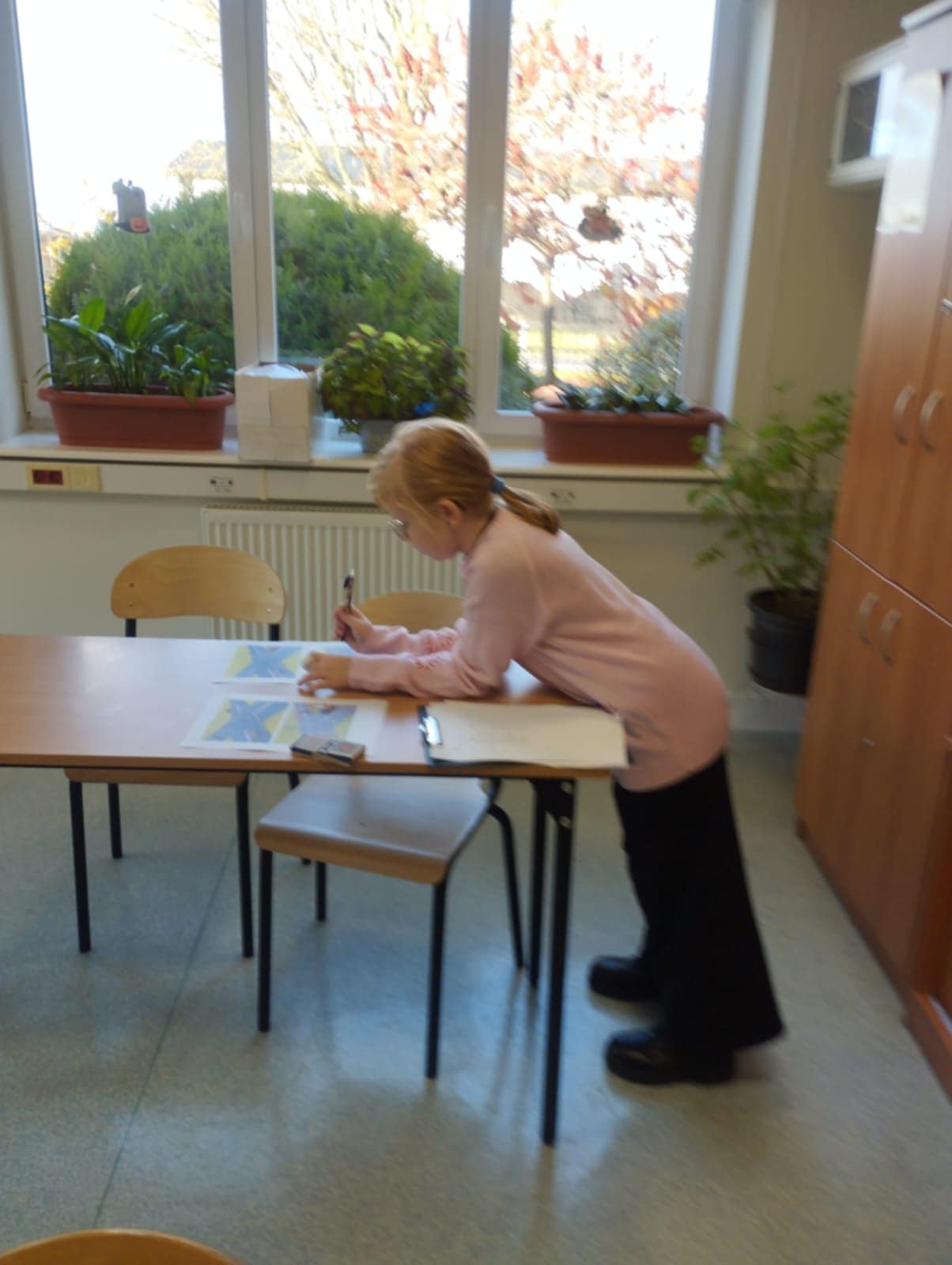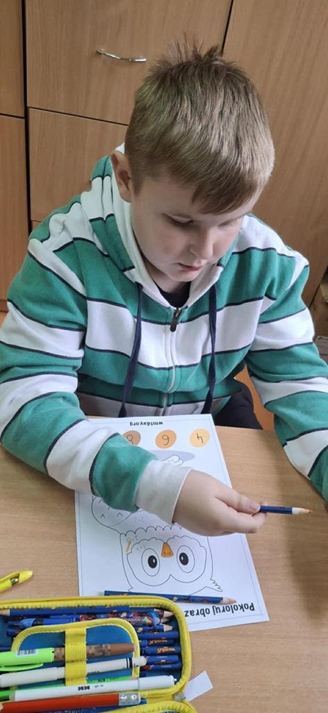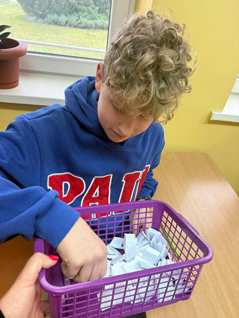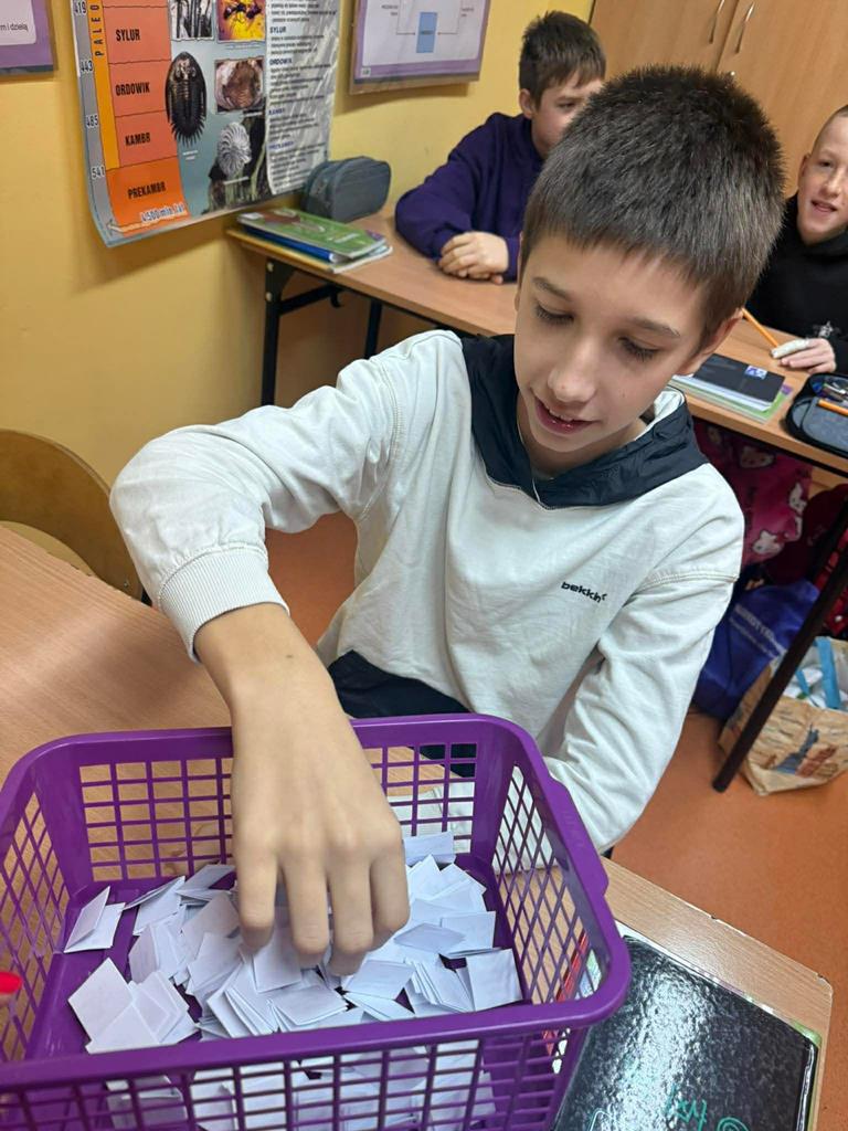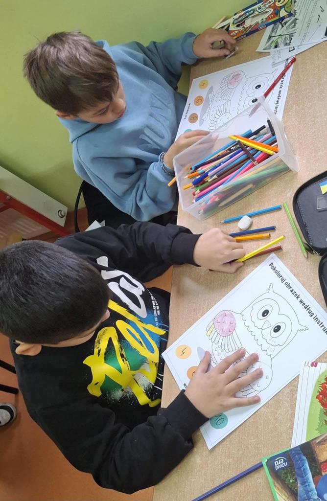 Młodsi uczniowie również aktywnie uczestniczyli w obchodach dnia – utrwalali tabliczkę mnożenia poprzez różnorodne formy zabaw: kolorowanki matematyczne, łamigłówki, zadania logiczne i krótkie quizy. Dzięki temu nauka stała się dla nich przyjemnością i okazją do twórczej aktywności.