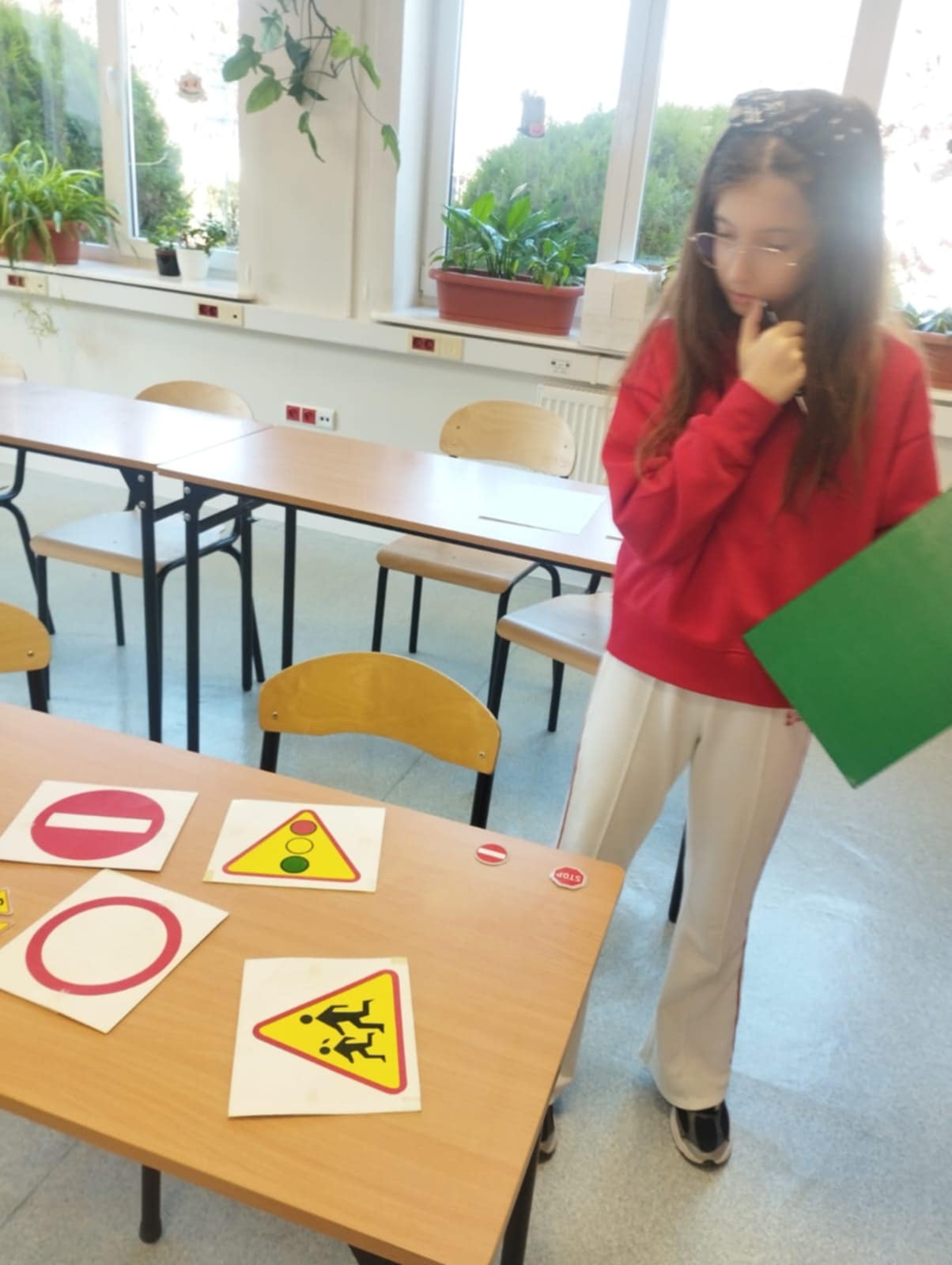 Podczas zabawy uczniowie przemieszczali się między przygotowanymi stacjami, gdzie rozpoznawali znaki drogowe, analizowali i ćwiczyli w praktyce zasady przechodzenia przez jezdnię, ćwiczyli prawidłowe zgłoszenie pod numer 112 oraz przypominali sobie znaczenie odblasków.