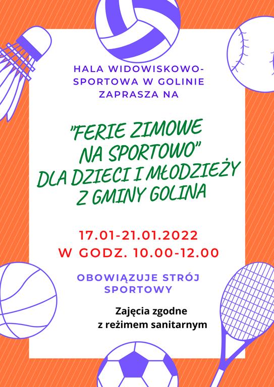Hala Widowiskowo-Sportowa w Golinie zaprasza na "Ferie zimowe na sportowo" dla dzieci i młodzieży z gminy Golina