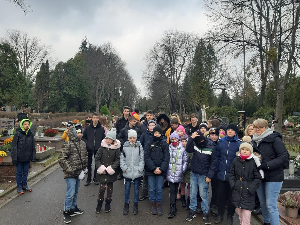 Grupa uczestników wycieczki zwiedziła miedzy innymi: Zespół zabytkowych cmentarzy wyznaniowych na Powązkach. Uczniowie mogli zobaczyć groby poległych, zasłużonych dla naszej Ojczyzny, bohaterów Powstania Warszawskiego, walczących o niepodległość, literatów, sportowców, artystów.