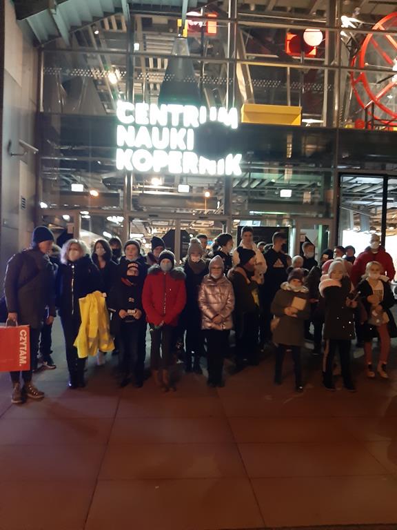 Po zwiedzeniu muzeum, w drodze do miejsca zakwaterowania, uczniowie mieli możliwość przejazdu ulicami Warszawy i podziwiania zabytków i iluminacji obiektów architektonicznych (między innymi Uniwersytet Warszawski, Kościół św. Krzyża, Pałac Prezydencki). Po dotarciu do hotelu grupa wspólnie spożyła obiadokolację.