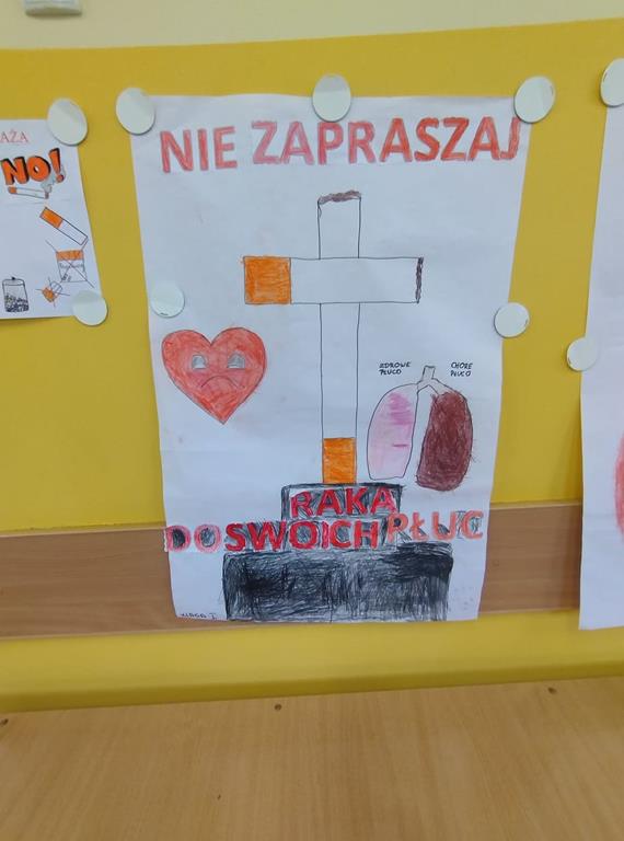 Na zaprzestanie palenia nigdy nie jest za późno. O tym przekonywali nasi uczniowie przygotowując plakaty zachęcające do rzucenia tego zgubnego nałogu i przestrzegające przed konsekwencjami palenia. W czwartek w naszej szkole specjalną lekcję na ten temat przeprowadziła Pani Kozioł z Powiatowej Stacji Sanitarno – Epidemiologicznej.