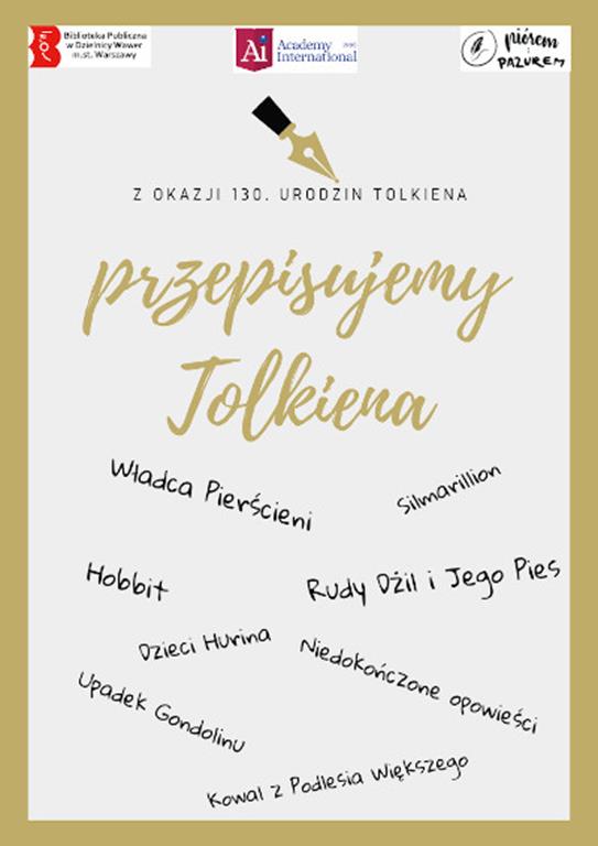 W 2022 r. przypada 130 rocznica urodzin J.R.R Tolkiena, wielkiego poligloty i miłośnika słów, twórcy własnych alfabetów i języków. Jedną z proponowanych wszystkim uczestnikom aktywności jest stworzenie unikatowych egzemplarzy książek wybitnego pisarza - "Hobbita" oraz "Władcy Pierścieni".