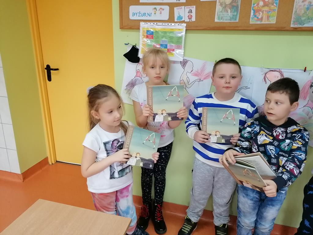 Na pamiątkę uczniowie otrzymali książki z Projektu,, Mała książka- duży człowiek’’ – Pierwsze abecadło , która będzie im przypominała o tym uroczystym wydarzeniu. Projekt realizowany jest ze środków Ministerstwa Kultury i Dziedzictwa Narodowego pod honorowym patronatem Ministerstwa Edukacji Narodowej oraz Rzecznika Praw Dziecka. I wreszcie przyszedł czas na wypożyczenie pierwszej książeczki. Na pewno w tym momencie radość nowych czytelników była największa. Założenie karty bibliotecznej i pierwsze wypożyczanie książek dało dzieciom dużo radości i powodu do dumy.