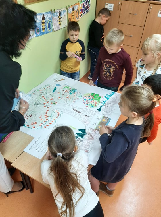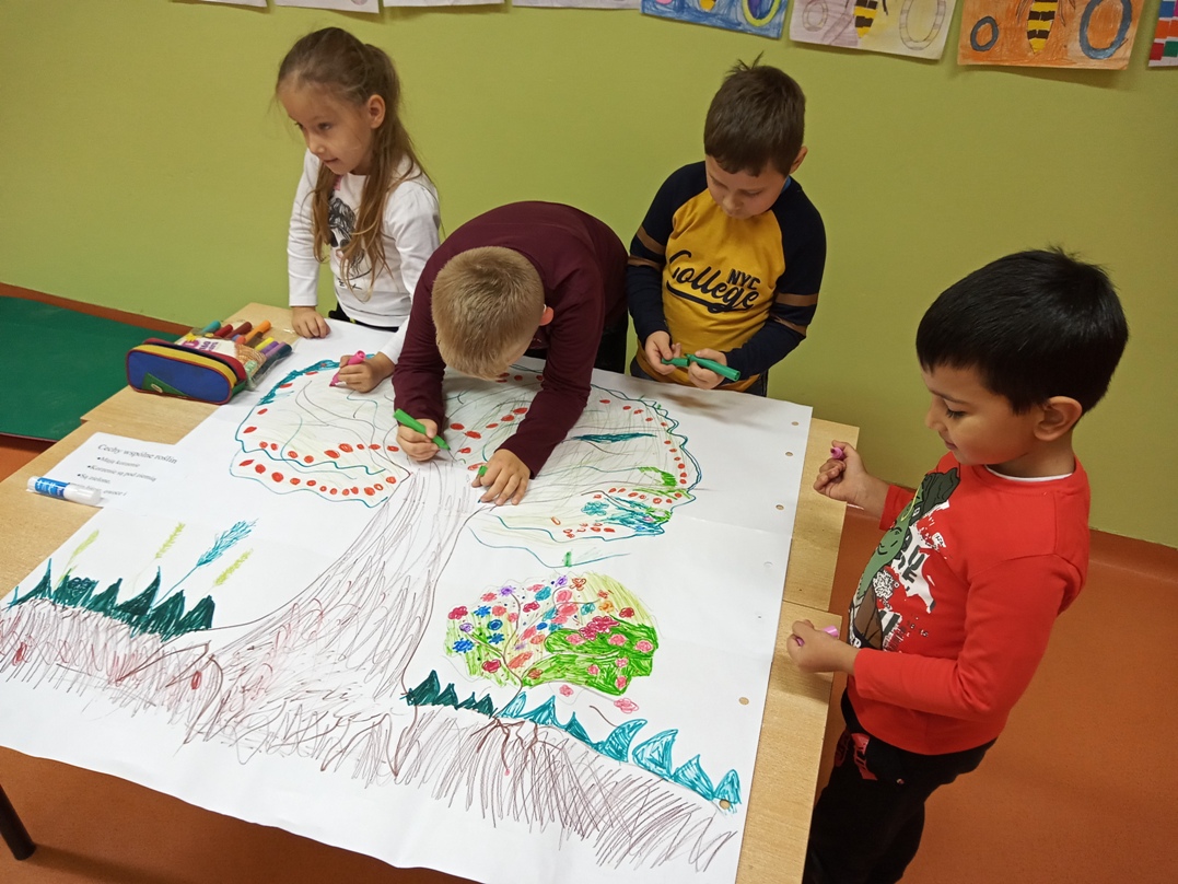 W części nawiązującej nauczycielka zadała zagadkę, której rozwiązaniem było pojęcie "roślina". Przypomniane zostały podstawowe wiadomości dotyczące roślin, a następnie dzieci w pracy zespołowej wykonały ilustrację przedstawiającą drzewo, trawę i krzew. Następnie w oparciu o własne obserwacje i wykonaną pracę zadaniem uczniów było wymienić cechy przedstawionych roślin, znaleźć ich wspólne cechy oraz zdefiniować pojęcie „ roślina”.