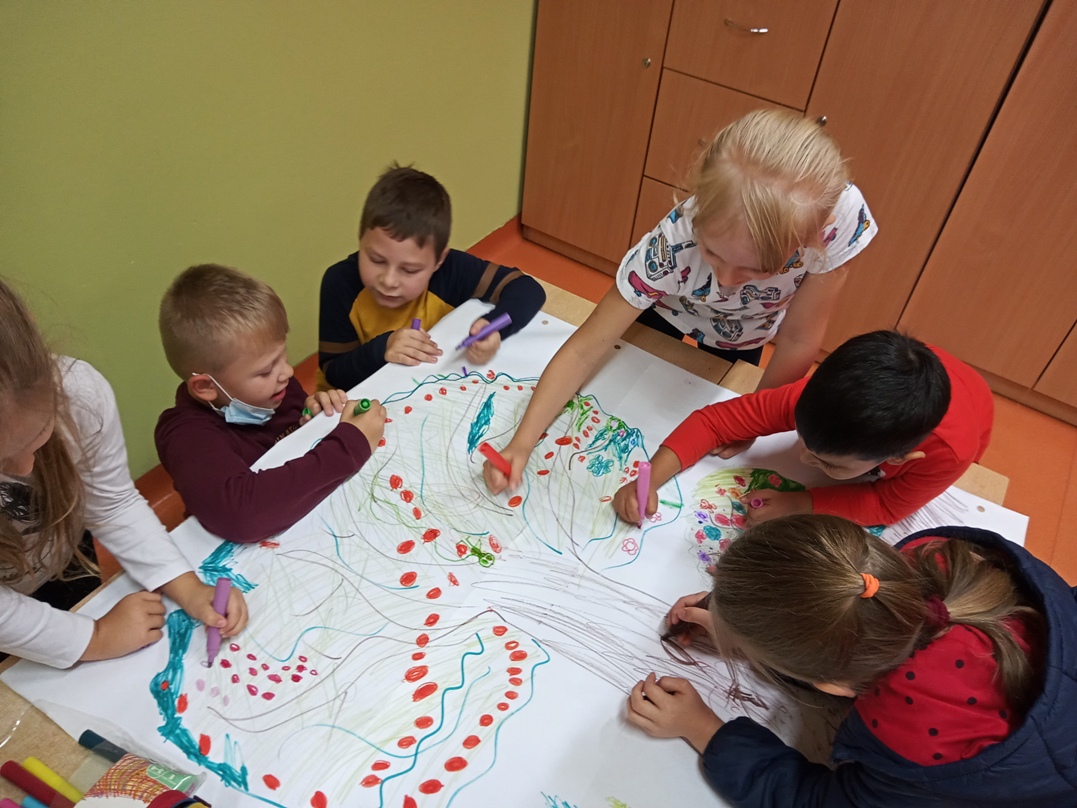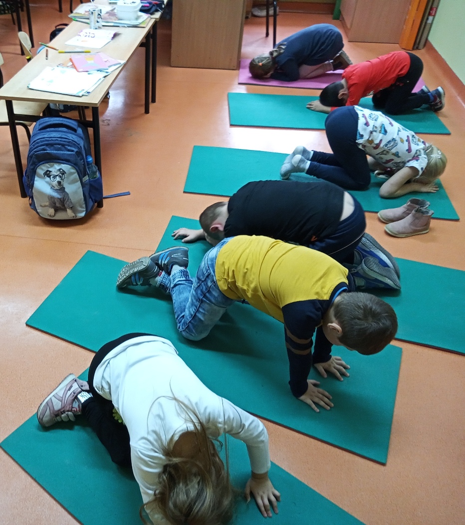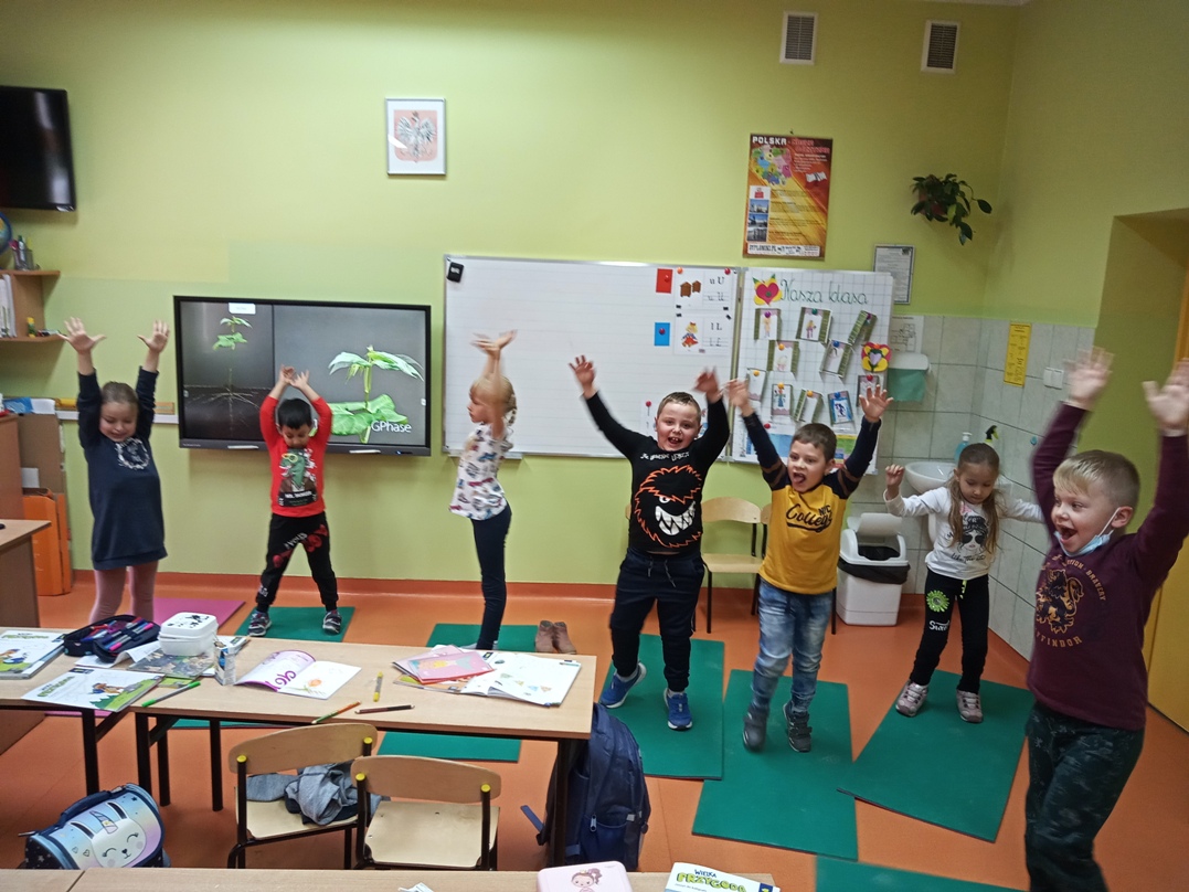 W ostatniej części bloku edukacyjnego w miała miejsce swobodna interpretacja ruchowa opowiadania czytanego przez nauczyciela- dzieci przy cichej muzyce zgodnie z treścią czytanego tekstu zmieniają pozycję i ruchem ją ilustrują. Dzięki temu uczestnicy mogli sami poczuć się jak kiełkujące ziarenko.