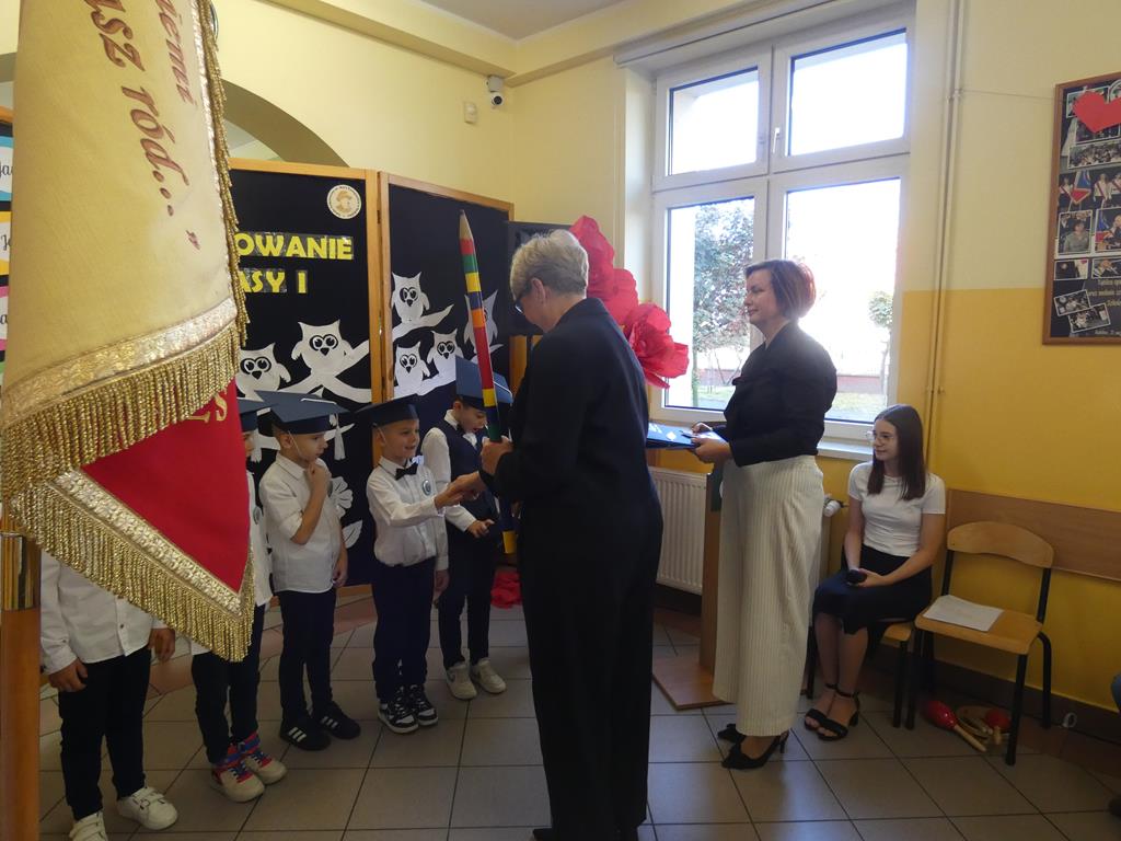 Uroczystość zakończyła się wspólną fotografią i słodkim poczęstunkiem pierwszoklasistów z nauczycielami i rodzicami.