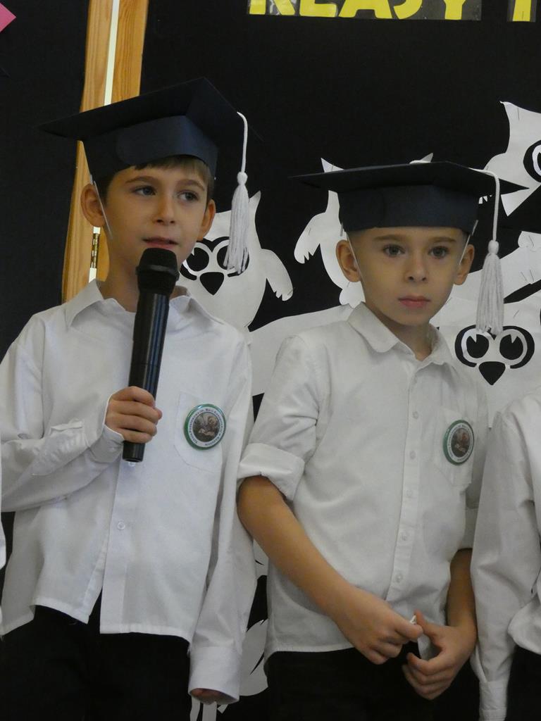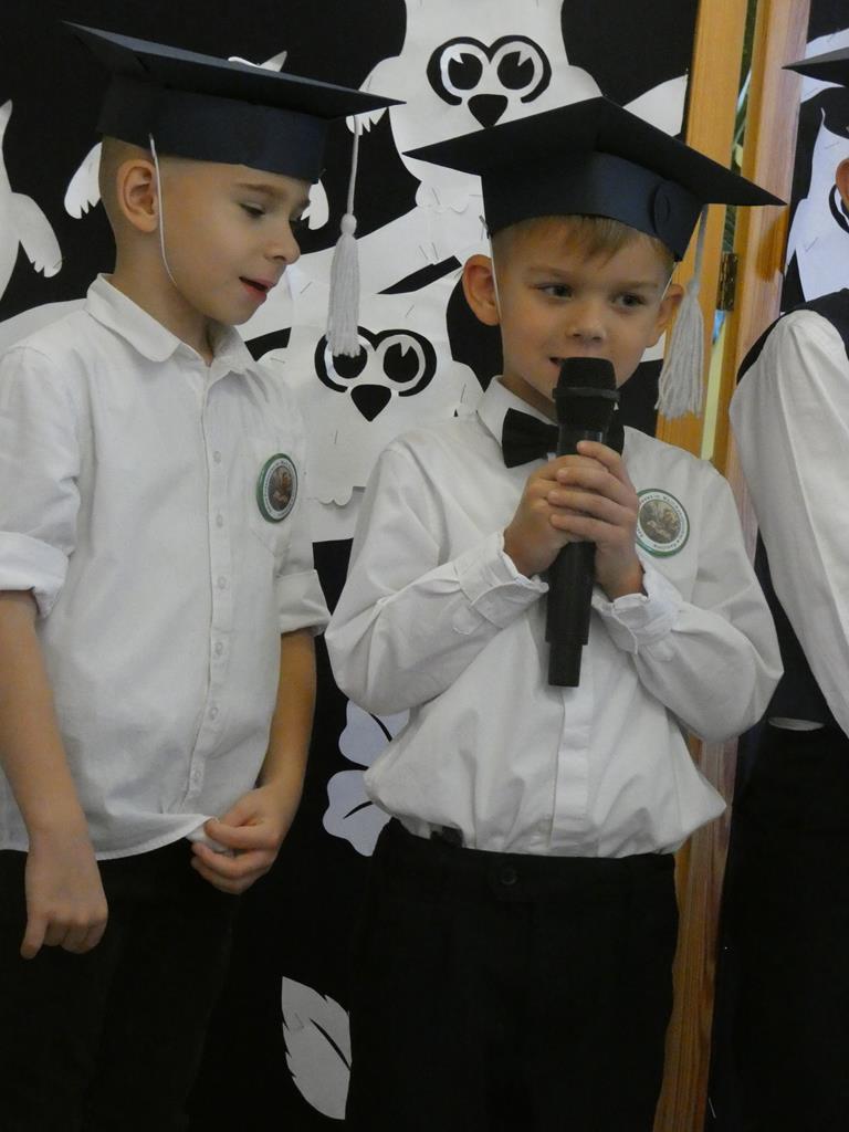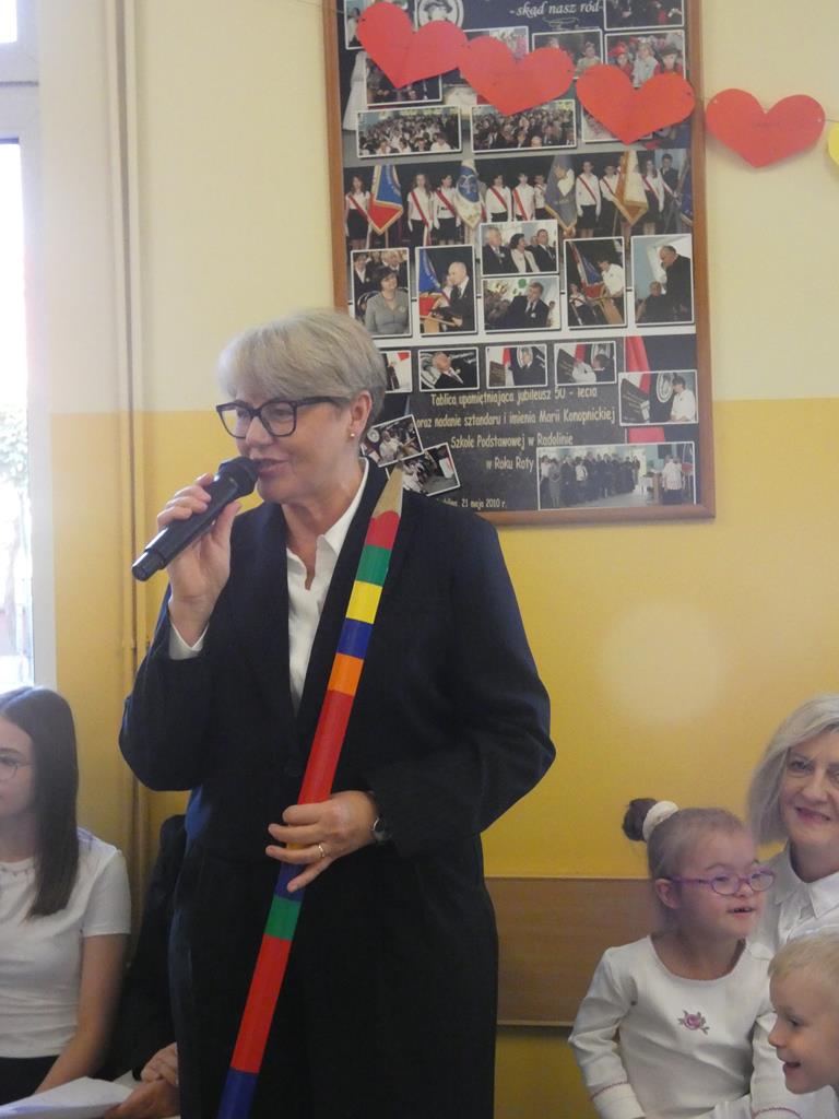 Na zakończenie uczniowie klas I-III przygotowali dla gości miłą niespodziankę – zaśpiewali piosenkę pt. „Do szkoły w Radolinie”. Występ został nagrodzony gromkimi brawami, a całe spotkanie zakończyło się wspólnym, pamiątkowym zdjęciem.