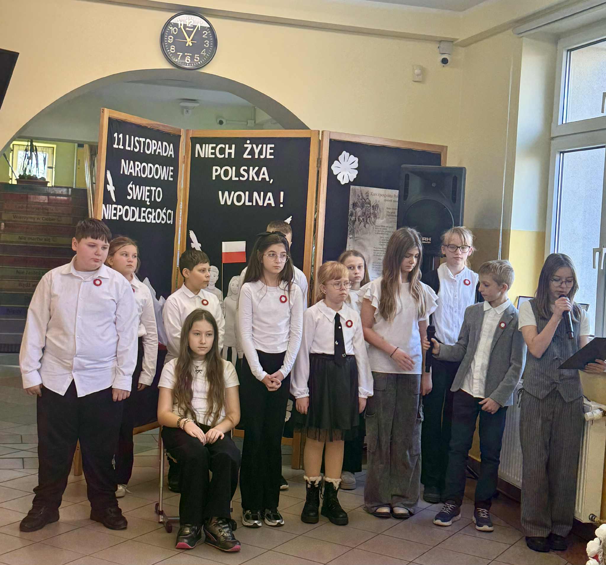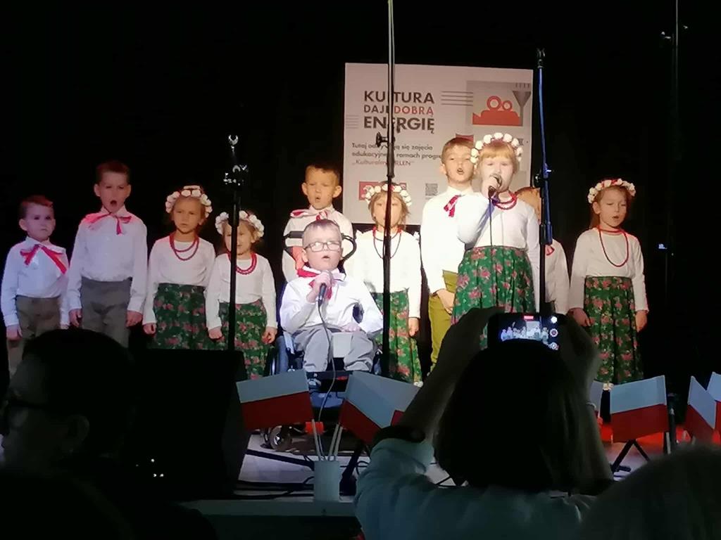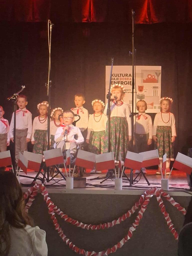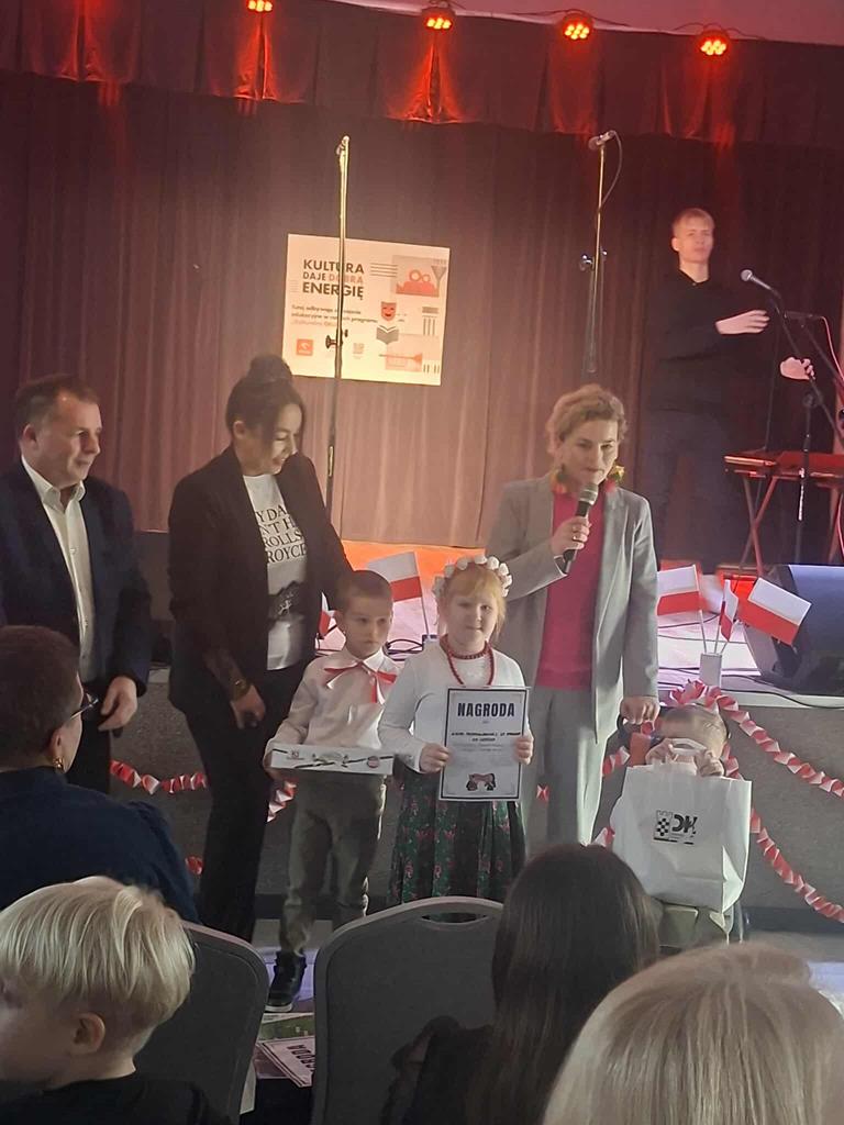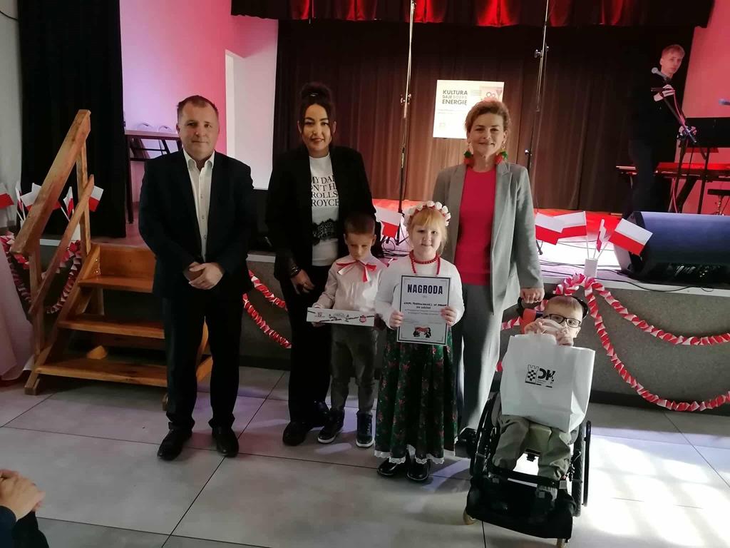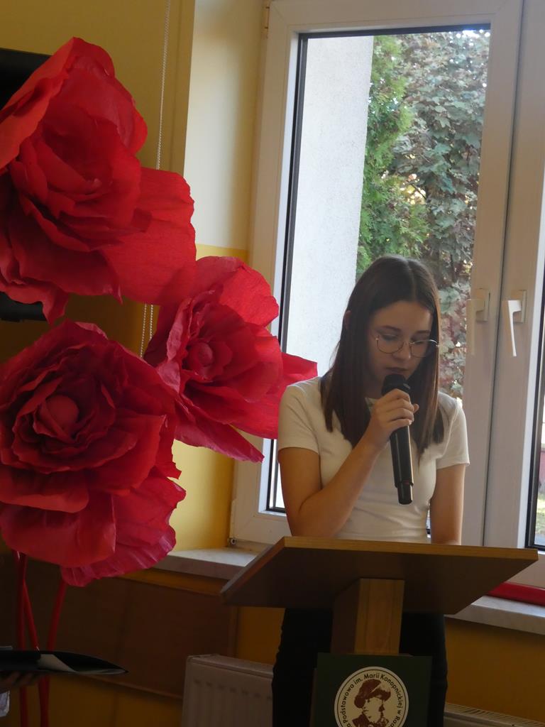 Wzięło w nim udział również czworo uczniów naszej szkoły: z klasy VI Blanka Wilant i Nikodem Urbański recytowali wiersz Marii Konopnickiej ,,Tam, w moim kraju”; z klasy VII – Michał Dryjer zaprezentował ,,Rotę”, a Vanessa Laskowska z klasy VIII wyrecytowała wiersz Tadeusza Kubiaka” ,,Tu wszędzie Polska”.