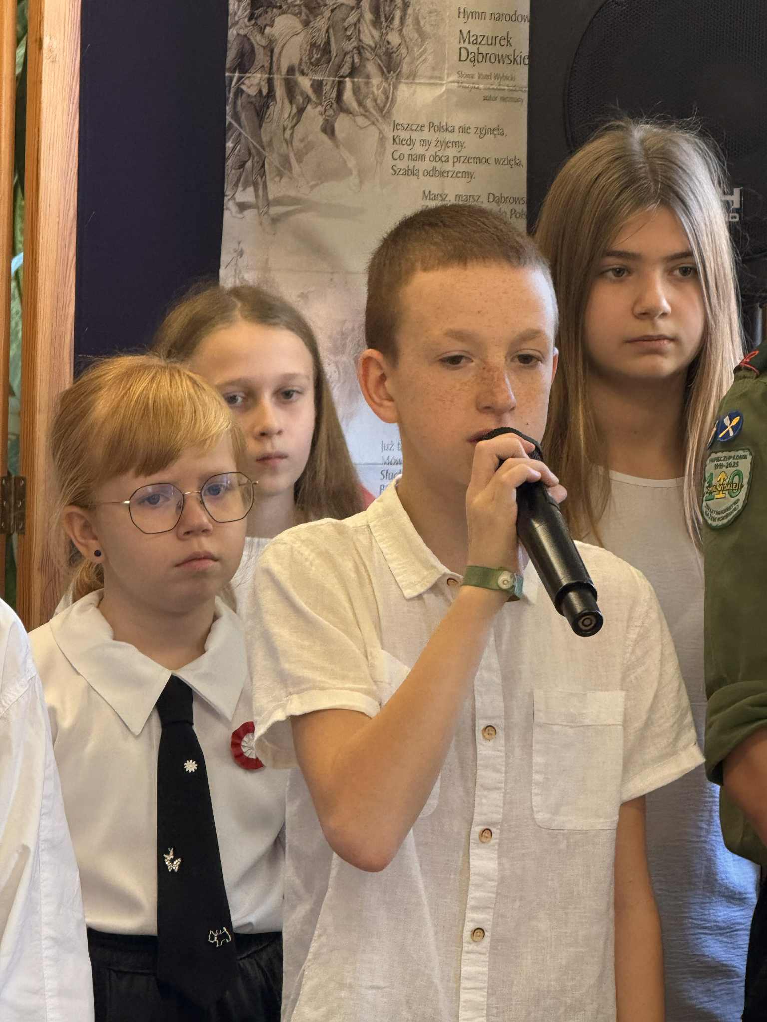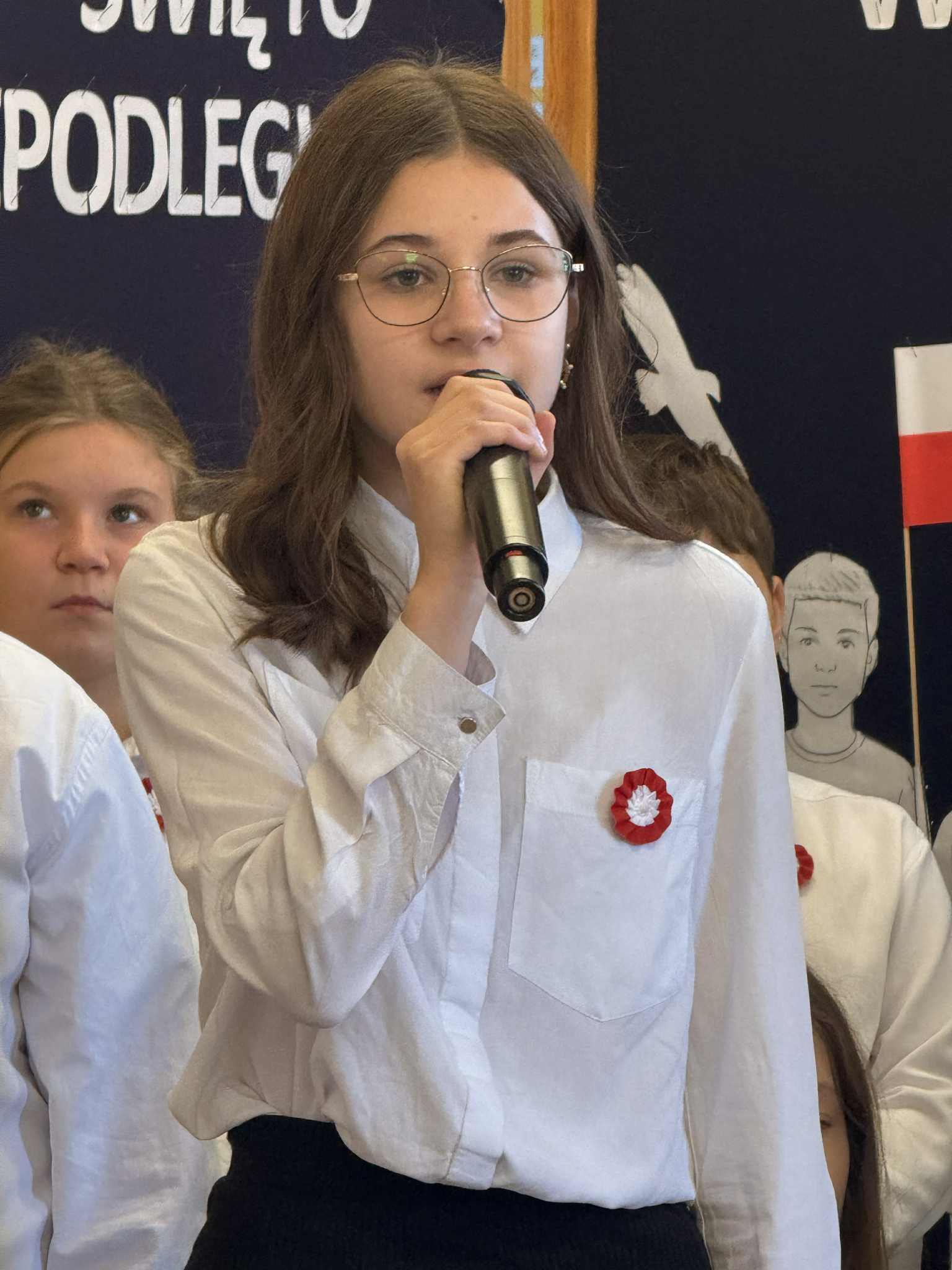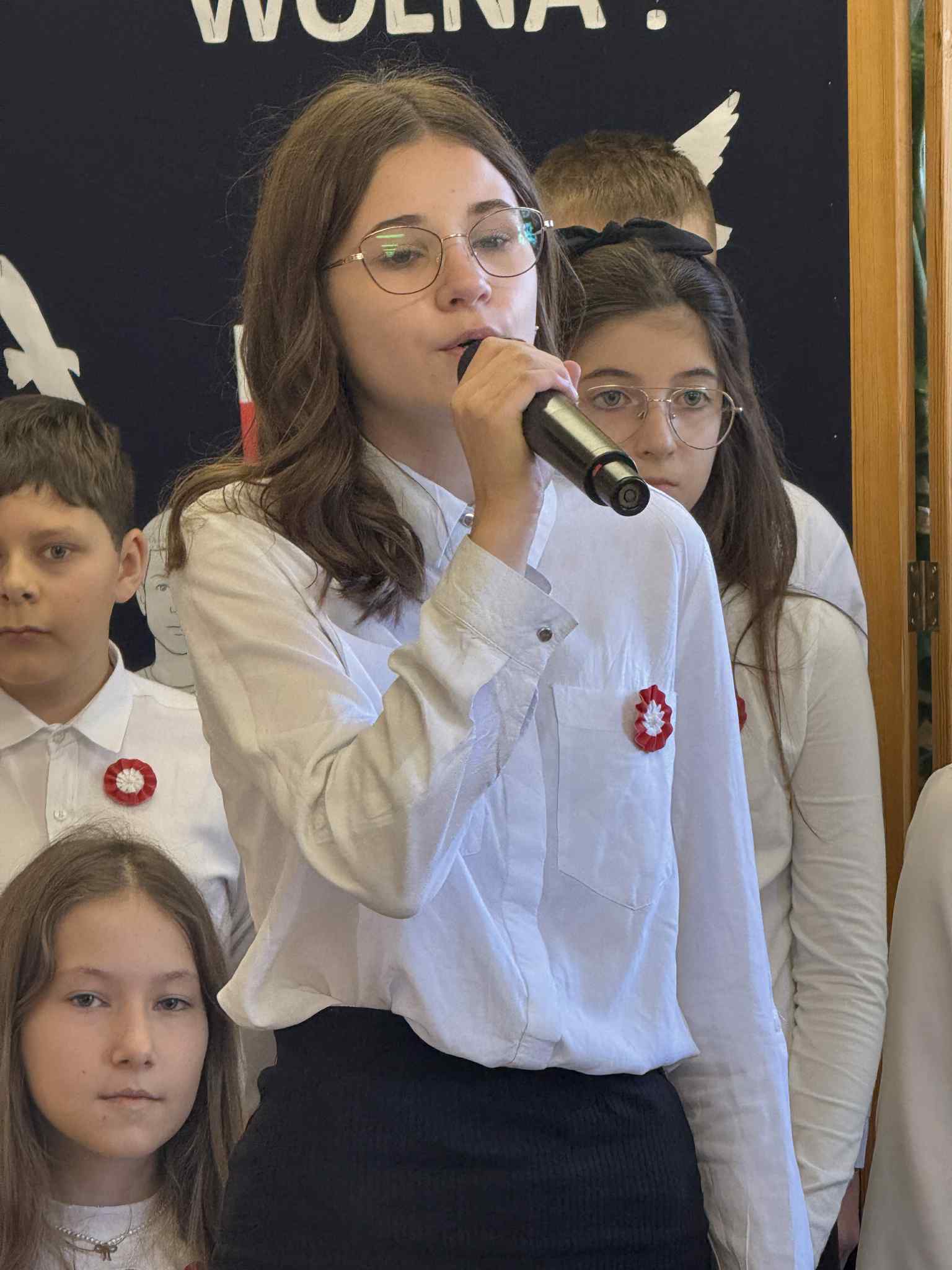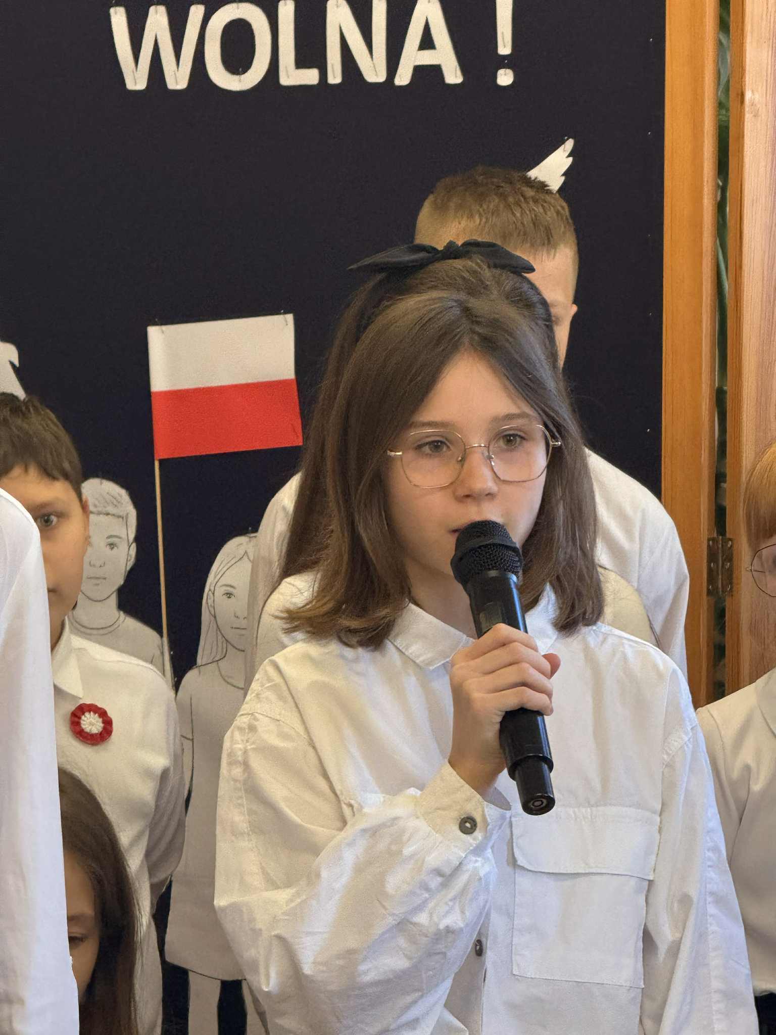 Wzięło w nim udział również czworo uczniów naszej szkoły: z klasy VI Blanka Wilant i Nikodem Urbański recytowali wiersz Marii Konopnickiej ,,Tam, w moim kraju”; z klasy VII – Michał Dryjer zaprezentował ,,Rotę”, a Vanessa Laskowska z klasy VIII wyrecytowała wiersz Tadeusza Kubiaka” ,,Tu wszędzie Polska”.