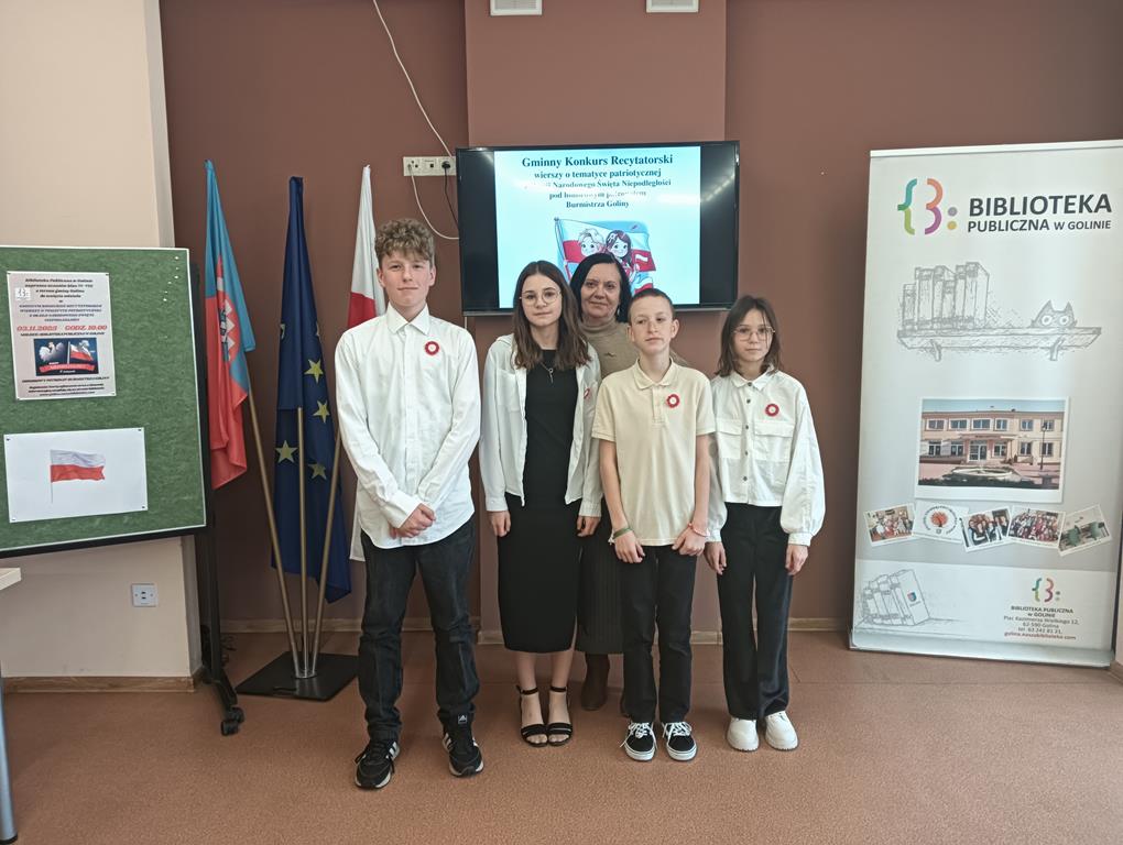 Z okazji Narodowego Święta Niepodległości w dniu 3 listopada 2025 roku w Bibliotece Publicznej w Golinie odbył się Gminny konkurs recytatorski wierszy o tematyce patriotycznej.
