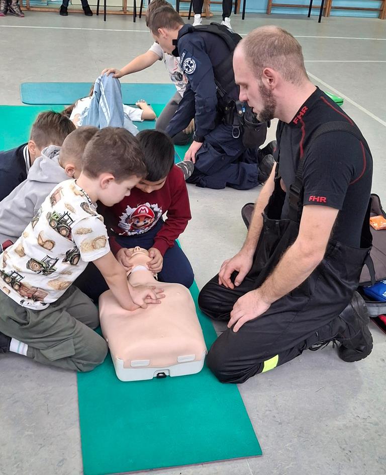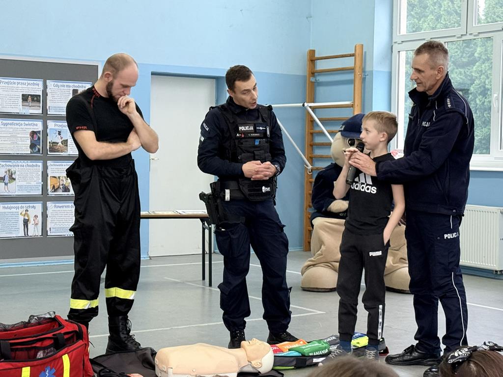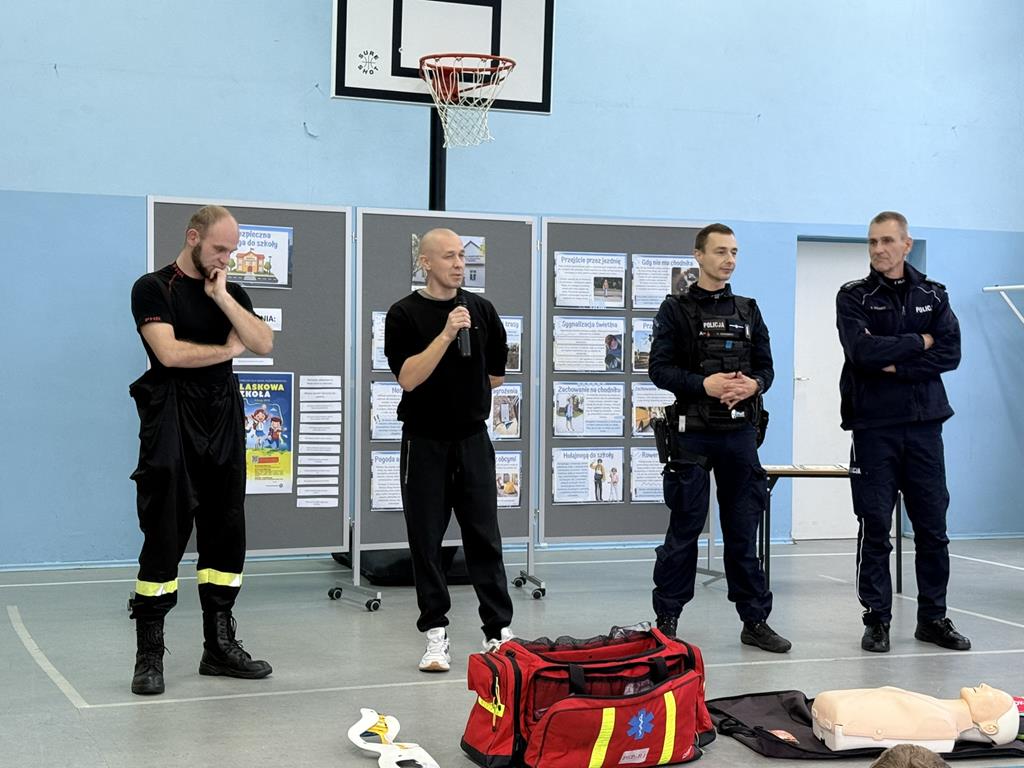 Podczas spotkania zaproszeni goście przypomnieli uczniom, jak ważne jest bezpieczeństwo na drodze – zarówno wtedy, gdy idziemy pieszo, jak i wtedy, gdy jedziemy na rowerze czy hulajnodze. Strażacy z kolei pokazali, jak prawidłowo udzielać pierwszej pomocy i jak zachować się w sytuacji zagrożenia. Dzieci mogły zobaczyć, że odwaga, opanowanie i wiedza mogą uratować komuś życie.