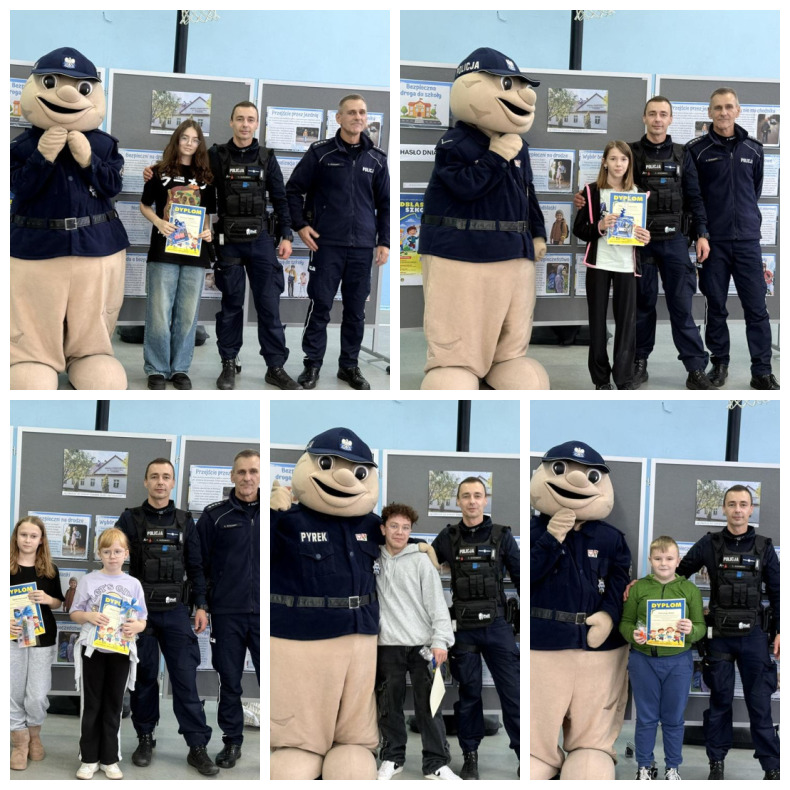 W czasie spotkania odbyło się także uroczyste wręczenie nagród laureatom szkolnego konkursu plastycznego i szkolnego konkursu wiedzy o bezpieczeństwie w ruchu drogowym pod hasłem „Bądź widoczny – bądź bezpieczny! Odblaskowa szkoła”. Laureaci otrzymali dyplomy i wyróżnienia z rąk Policjanta Pyrka oraz nauczycieli - organizatorów konkursów.