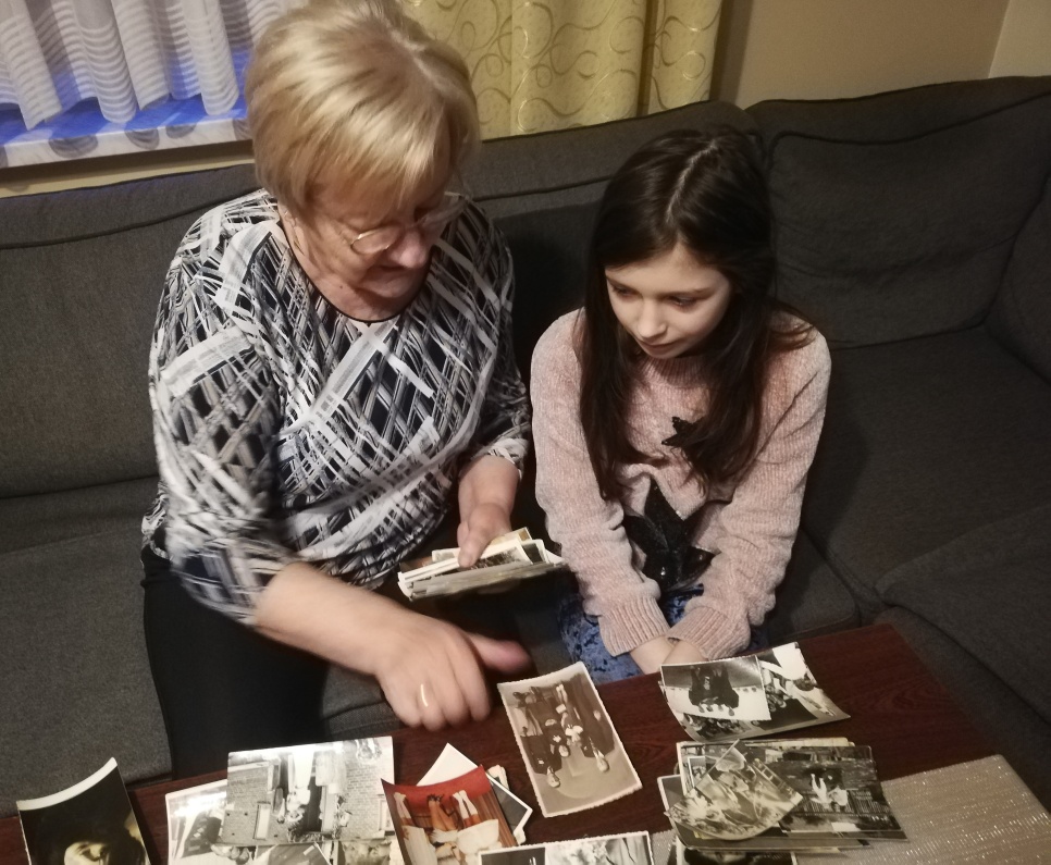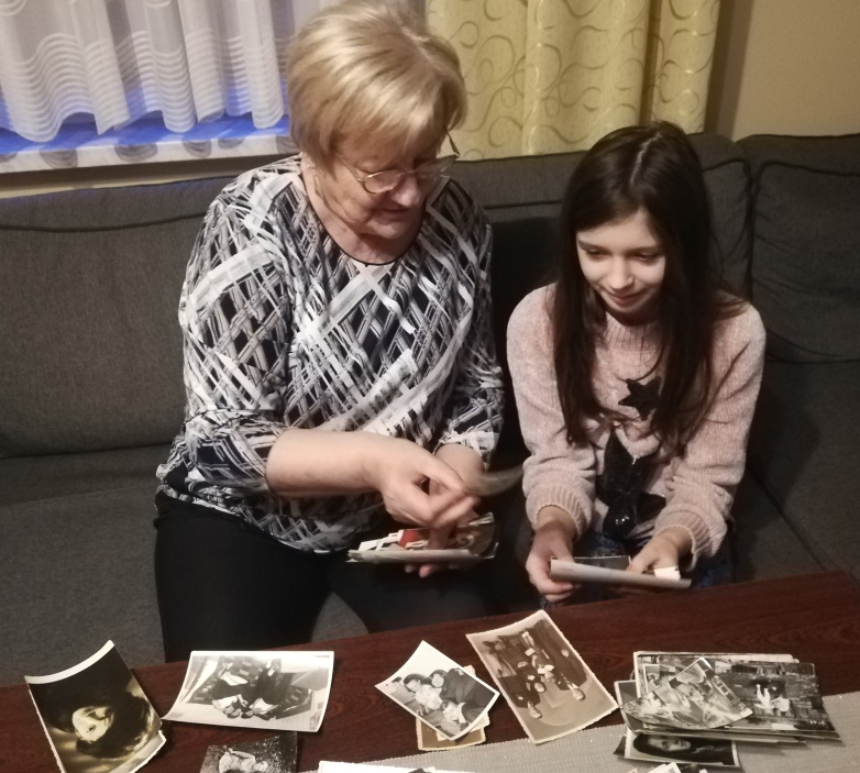Podczas zajęć online uczniowie oglądali pokazy starych fotografii przekazanych nam od osób, z którymi przeprowadzaliśmy wywiady. W najbliższym czasie mamy zamiar przespacerować się po Myśliborzu i sfotografować okolicę w czasach dzisiejszych. Stare fotografie oraz zrobione przez nas zdjęcia Myśliborza wykorzystamy do przygotowania wystawy pt.: „ Myślibórz wczoraj i dziś”.