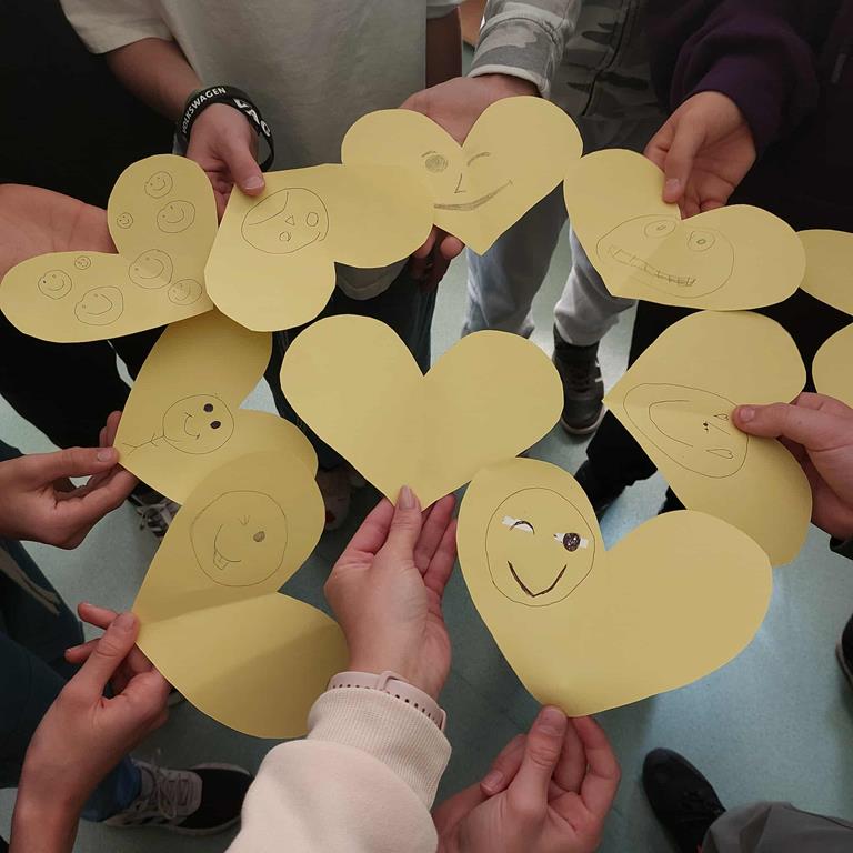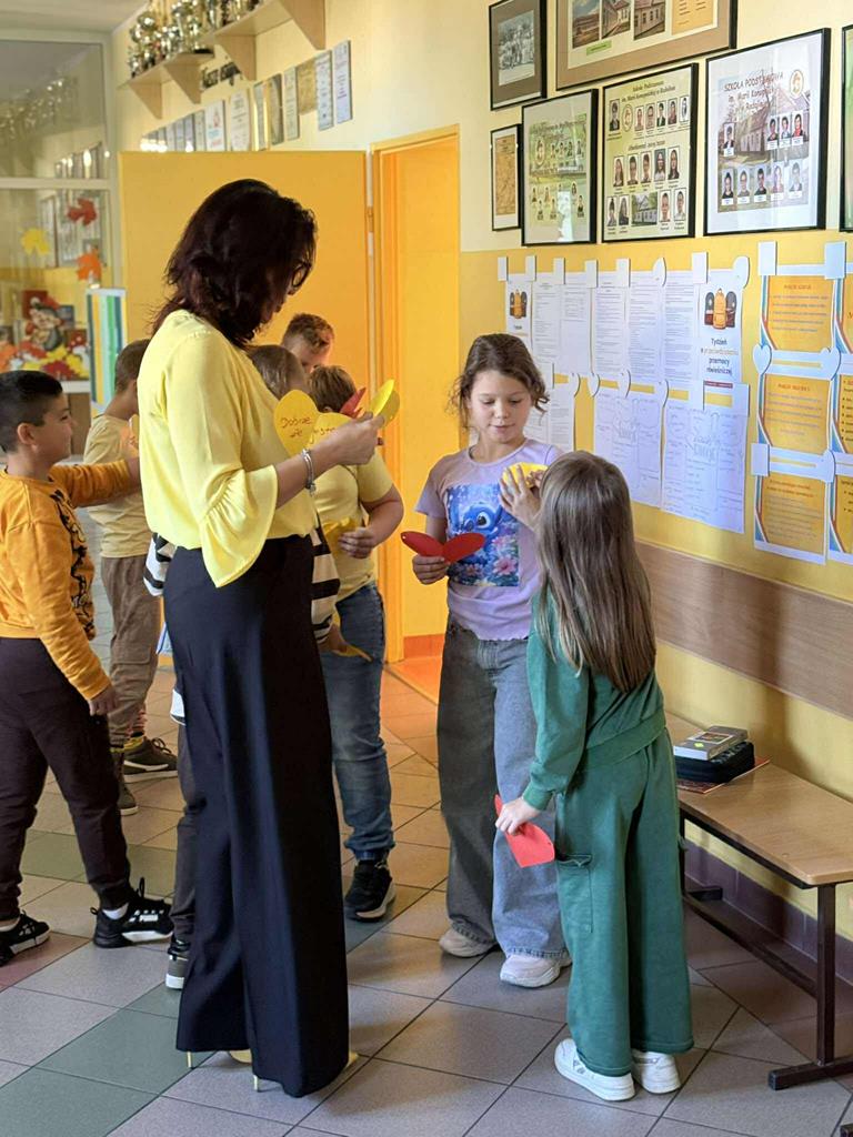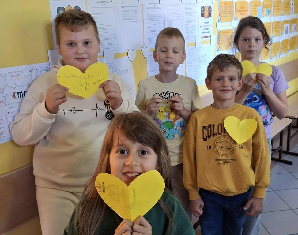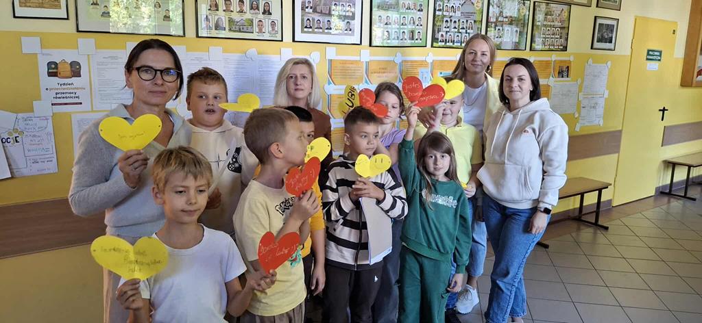 Miniony tydzień w naszej szkole przebiegał pod znakiem wyjątkowych działań w ramach Tygodnia Przeciwdziałania Przemocy Rówieśniczej. Każdy dzień poświęcony był innemu ważnemu tematowi – empatii i emocjom, współpracy i refleksji nad poczuciem niemocy, przeciwdziałaniu hejtowi i cyberprzemocy. Uczniowie brali udział w grach integracyjnych, kręgach rozmowy, pogadankach, oglądali filmy edukacyjne oraz działali plastycznie. Wszystkie aktywności miały wspólny cel – uczyć szacunku, odpowiedzialności i wspierania się nawzajem. Zwieńczeniem całego tygodnia było dzisiejsze Święto Przyjaźni, które podkreślało to, co najważniejsze w relacjach rówieśniczych – zaufanie, wzajemną pomoc i radość ze wspólnego bycia razem. Na korytarzach pojawiły się żółte i czerwone serduszka promujące przyjaźń, a uczniowie obdarowywali się „życzliwymi karteczkami” – krótkimi wiadomościami pełnymi dobrych słów. W klasach odbywały się zabawy i zadania wzmacniające więzi.