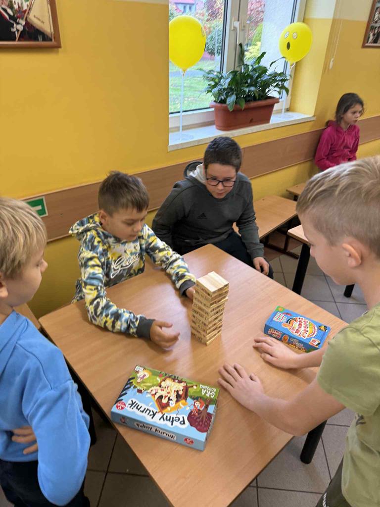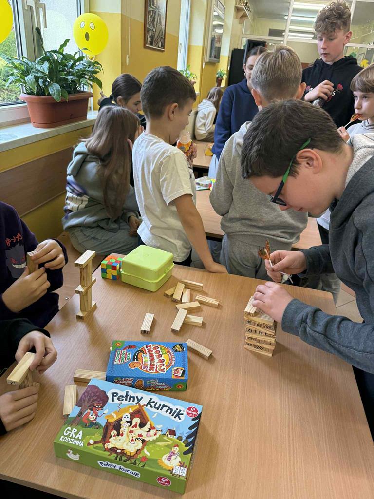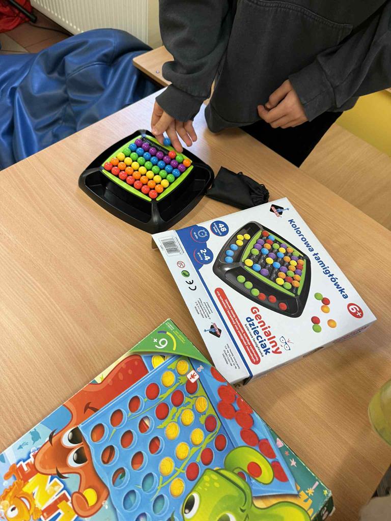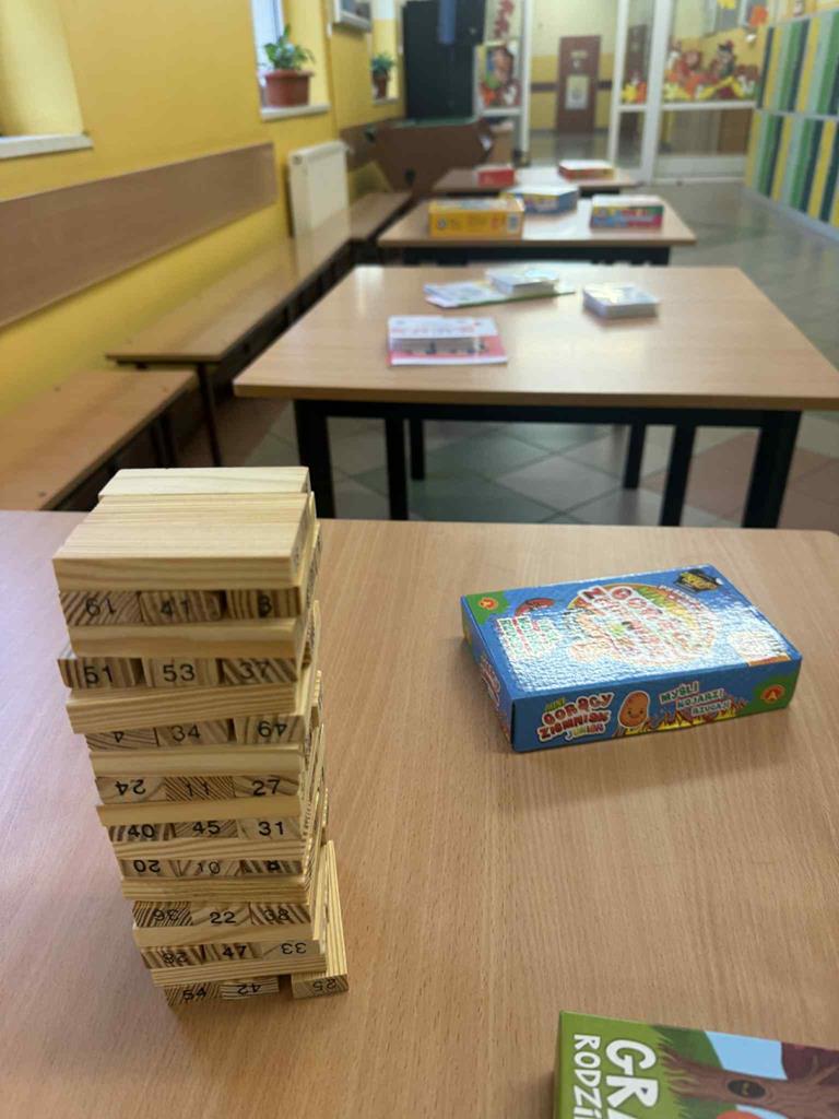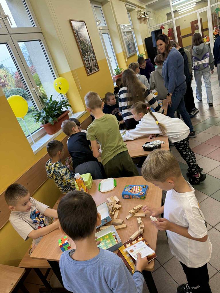 W naszej szkole odbył się Dzień Matematycznych Gier Planszowych, zorganizowany przez nauczyciela matematyki we współpracy z Samorządem Uczniowskim. Podczas przerw korytarz szkolny zamienił się w przestrzeń pełną planszowych emocji, strategii i dobrej zabawy. Przy specjalnie przygotowanych stolikach uczniowie mieli okazję zagrać w gry rozwijające logiczne myślenie, refleks oraz umiejętności matematyczne.
