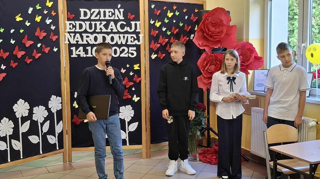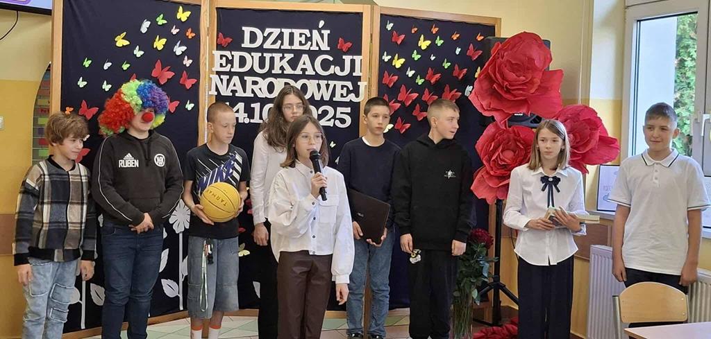 10 października w naszej szkole odbył się apel z okazji Dnia Edukacji Narodowej, świętowaliśmy z uśmiechem, wdzięcznością i... szczyptą humoru. Uczniowie zaprezentowali zabawną część artystyczną o najciekawszych i kreatywnych uczniowskich wymówkach („proszę pani, to nie ja – to kot nacisnął klawiaturę!"). Podczas uroczystości Pani Dyrektor wręczyła nagrody dla nauczycieli i pracowników szkoły, a uczniowie pokazali, że potrafią rozbawić i wzruszyć jednocześnie.