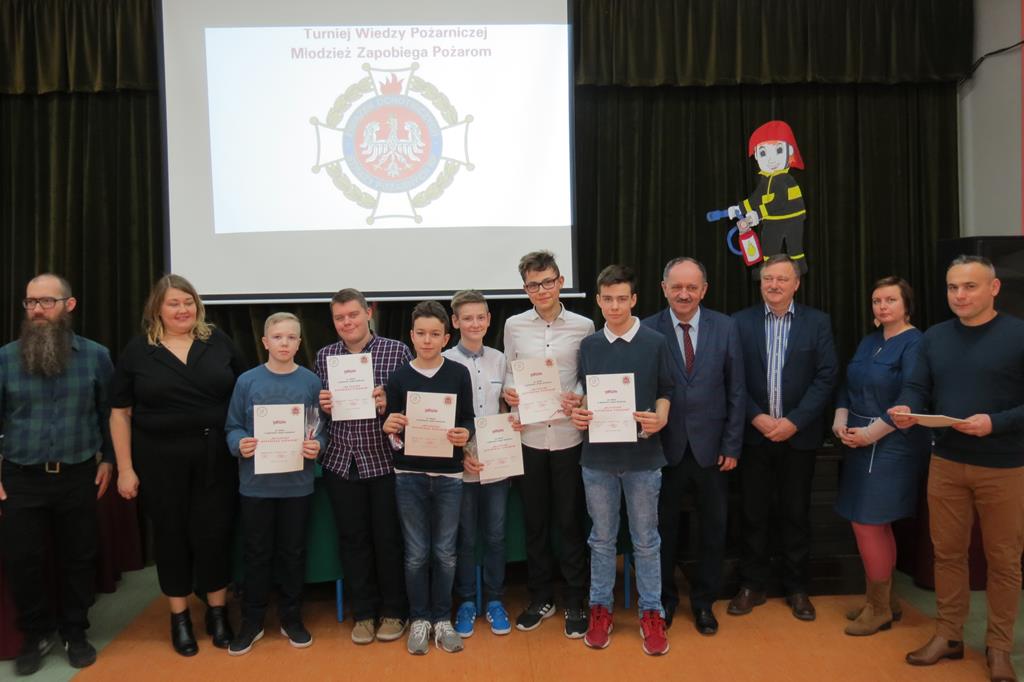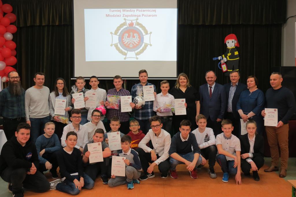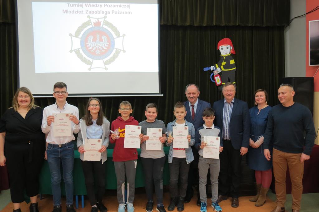 Jak co roku chętni uczniowie naszej szkoły wzięli udział w gminnych eliminacjach konkursu pożarniczego pt. „Młodzież zapobiega pożarom”, które odbyły się w murach Szkoły Podstawowej im. Juliusza Słowackiego w Golinie 25 lutego 2020r. W kategorii klas IV- VI naszą placówkę reprezentowała Michalina Kurleto, a w kategorii klas VII- VIII- Mateusz Górniak. Konkurs polegał na rozwiązaniu testu składającego się z 16-stu (grupa młodsza), bądź 18- stu (grupa starsza) pytań zamkniętych, w których należało wykazać się wiedzą z zakresu pożarnictwa i pierwszej pomocy przedmedycznej. Za swój udział i włożony wkład pracy w przygotowanie uczniowie otrzymali pamiątkowe dyplomy i nagrody rzeczowe. Gratulacje przyjęli również od Burmistrza Goliny pana Mirosława Durczyńskiego, pani sekretarz Anny Górznej oraz dyrektora szkoły pana Jana Kasprzaka.