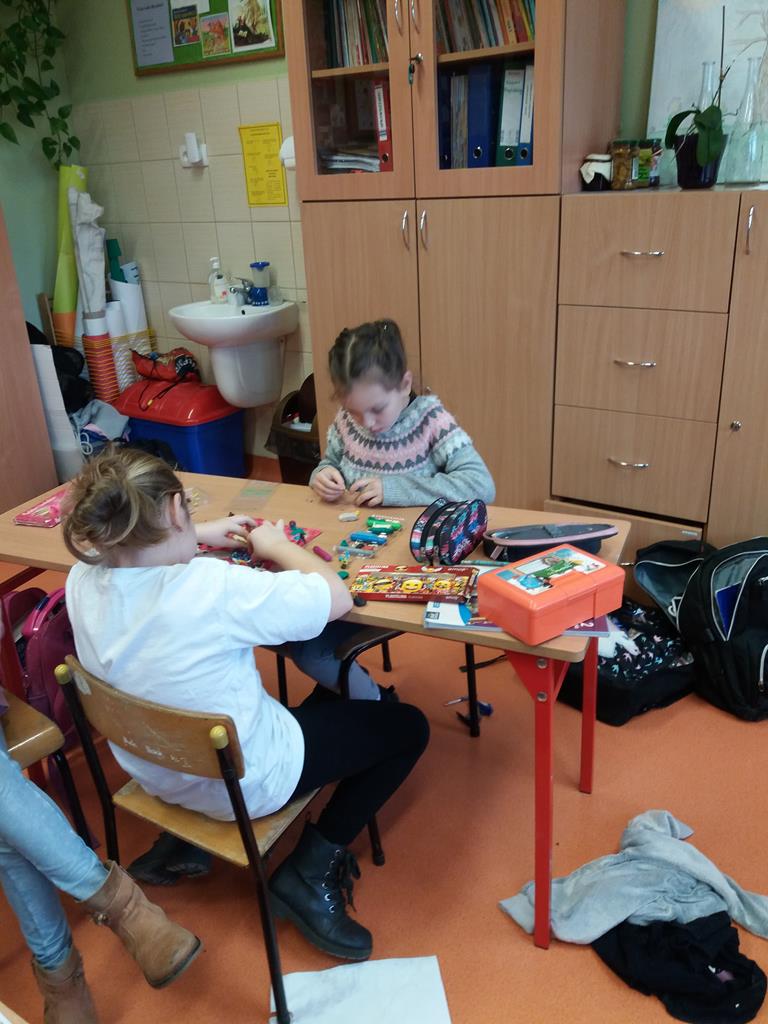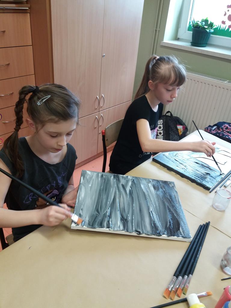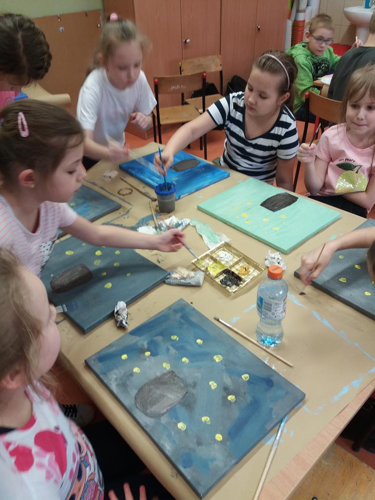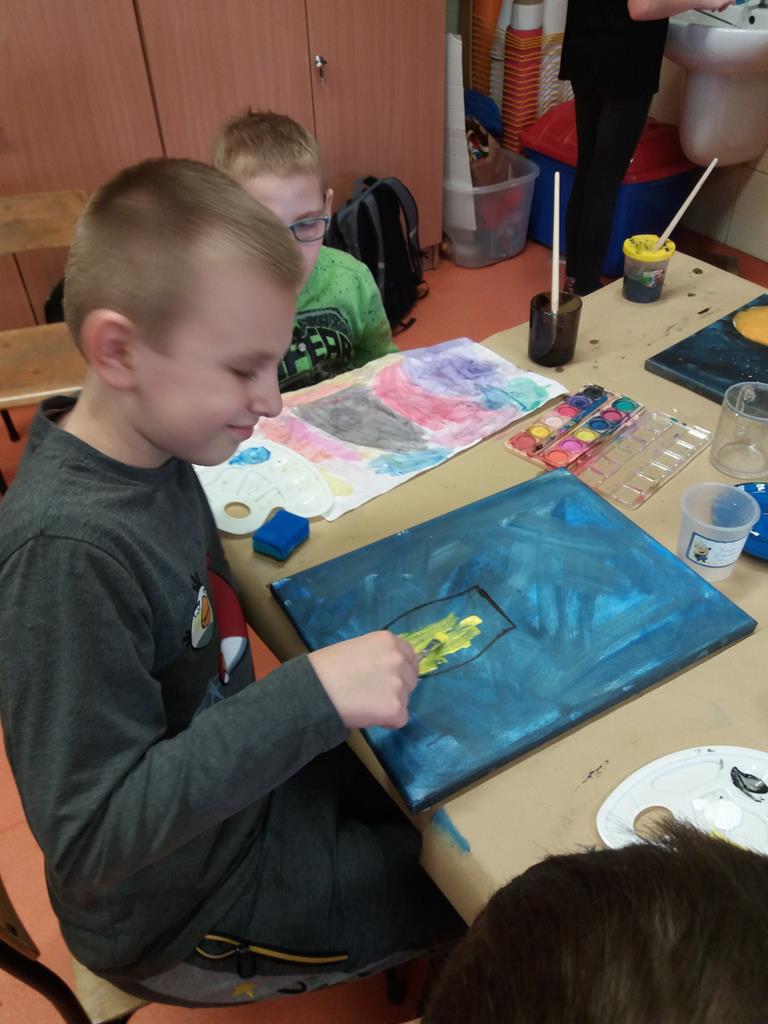 i malowaniu, dzieci odkrywają świat, tworzenie jest dla nich źródłem przyjemności estetycznej i radością z własnej twórczości. Dzięki różnorodności materiałów plastycznych, z których korzystają na zajęciach, uczniowie są stymulowani do poszukiwania nowych rozwiązań i skojarzeń. Pomysły na prace plastyczne czerpią z różnych źródeł. Wszystko jest dla nich inspiracją.