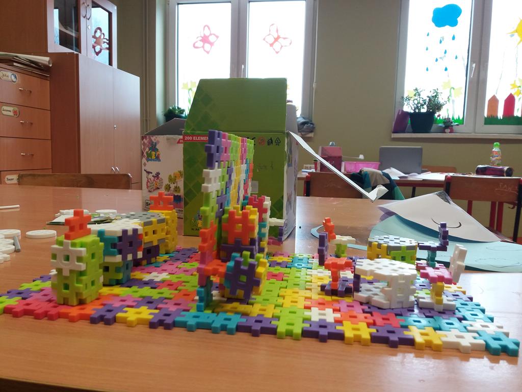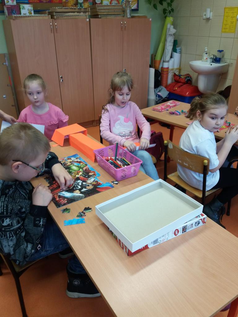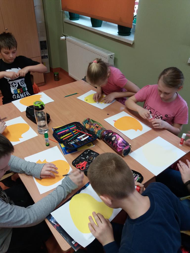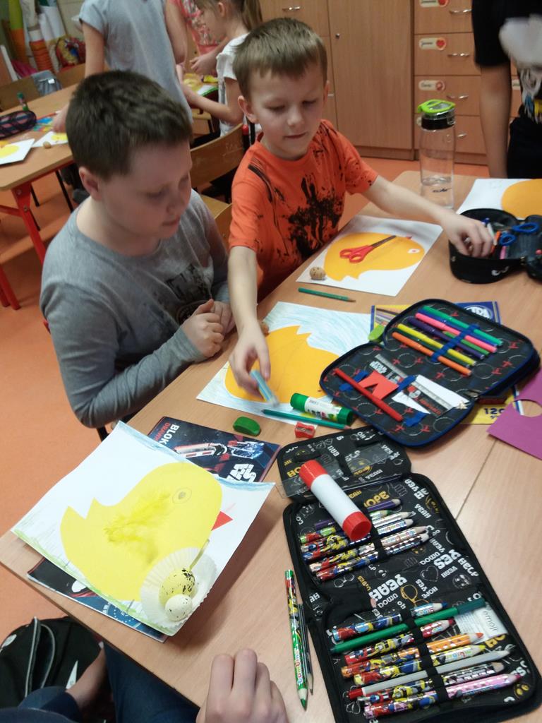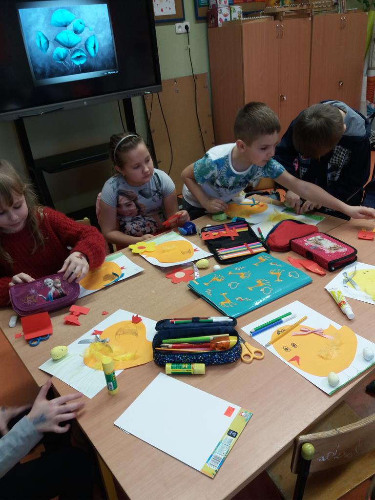 i malowaniu, dzieci odkrywają świat, tworzenie jest dla nich źródłem przyjemności estetycznej i radością z własnej twórczości. Dzięki różnorodności materiałów plastycznych, z których korzystają na zajęciach, uczniowie są stymulowani do poszukiwania nowych rozwiązań i skojarzeń. Pomysły na prace plastyczne czerpią z różnych źródeł. Wszystko jest dla nich inspiracją.