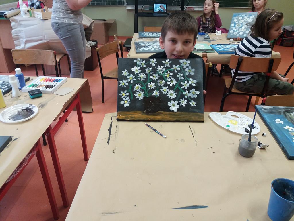W naszej szkole, w każdą środę odbywają się zajęcia plastyczne podczas których dzieci rozwijają swoją sprawność motoryczną i wrażliwość artystyczną, kształcą wyobraźnię, zdolność myślenia oraz zaspokajają potrzebę aktywności. Ponadto dzięki rysowaniu