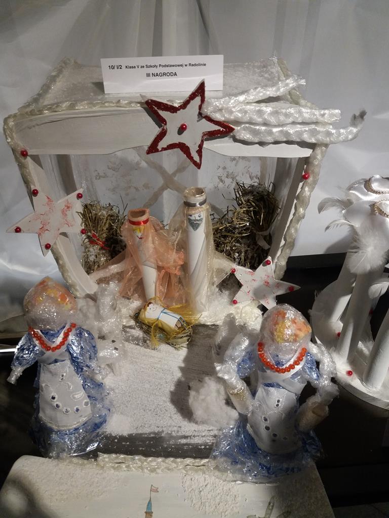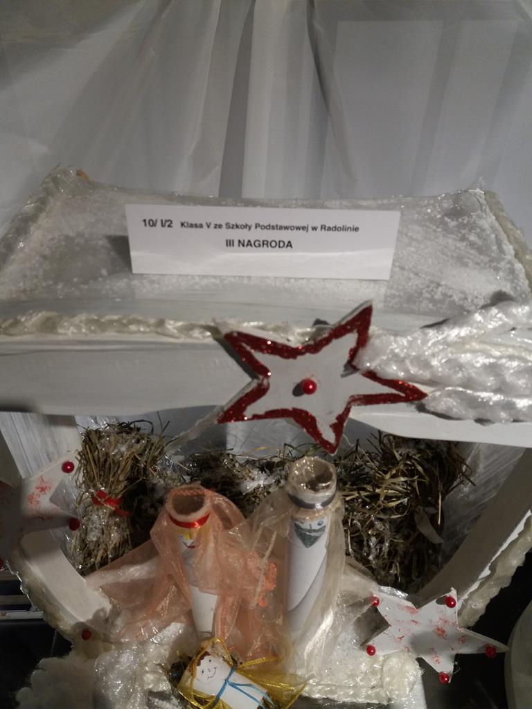 Nagrody i wyróżnienia były przyznawane w pięciu kategoriach, a nasi uczniowie oraz nauczyciele okazali się laureatami trzech kategorii. Zatem można śmiało powiedzieć, że odnieśliśmy wielki sukces, ponieważ oddział przedszkolny z wychowawczynią p. Emilią Napierałą zdobył III nagrodę, klasa V z wychowawczynią p. Bernadetą Kucharską zdobyła III nagrodę, szopka wykonana przez nauczycieli: Magdaleną Lewartowską, Barbarę Jarońską, Bernadetę Kucharską i Emilię Napierałę zdobyła III nagrodę, a kółko plastyczne „Kolorowe Kredki” prowadzone przez p. Bernadetę Kucharską otrzymało wyróżnienie.
