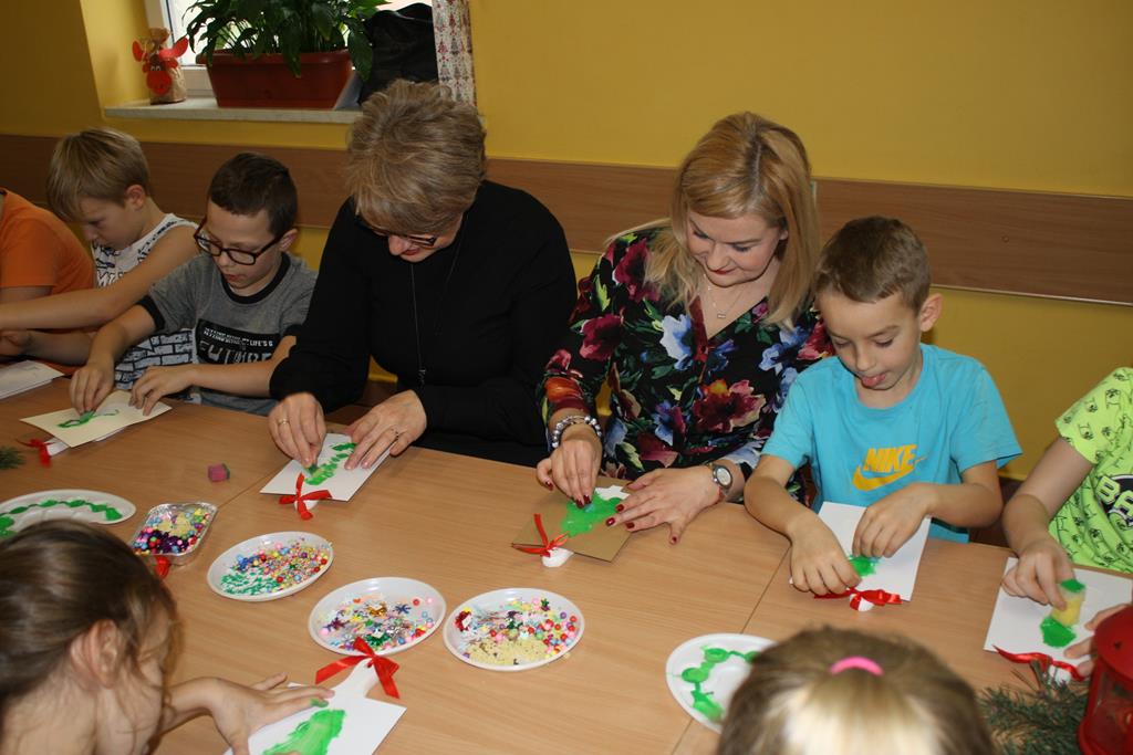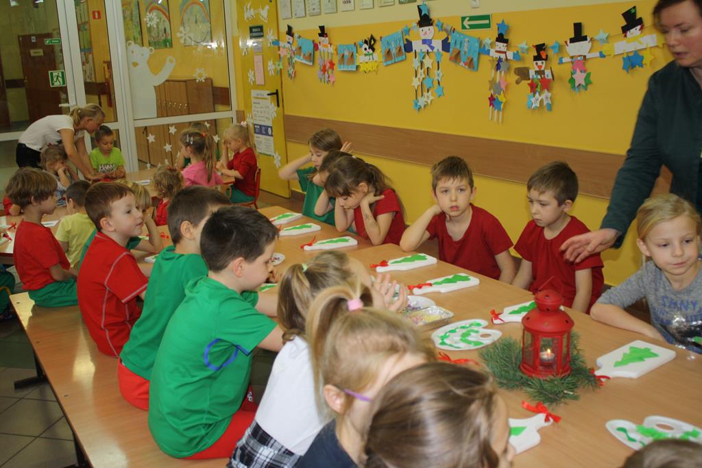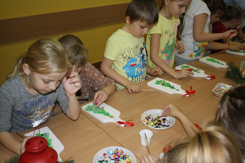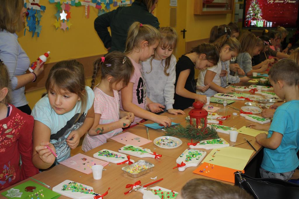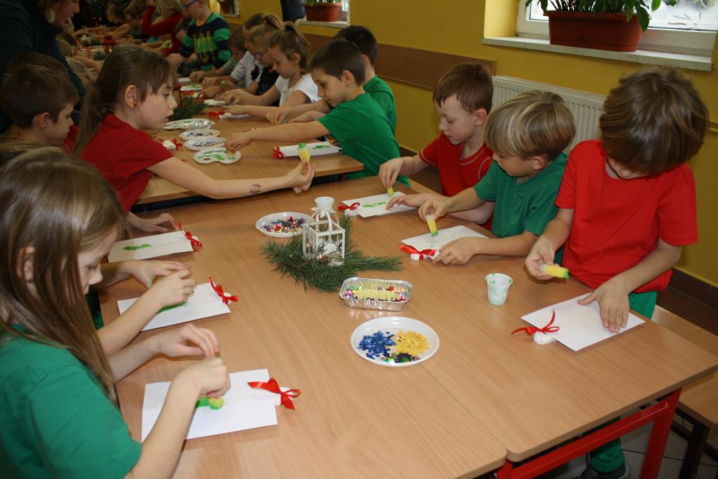 Zbliżające się Święta Bożego Narodzenia to szczególny czas, bowiem w całej szkole czuć zapach choinki, pieczonych pierniczków i podniosłą atmosferę. W dniu 4 grudnia korytarz główny naszej szkoły zmienił się na moment w pracownię artystyczną. Wśród świątecznych melodii i dekoracji, a także w atmosferze wzajemnej sympatii odbywały się warsztaty bożonarodzeniowe „Świąteczny czas”, podczas których uczniowie z oddziałów przedszkolnych i klas I-III z wychowawcami oraz zaproszeni goście rozwijali swoje zdolności artystyczne.
