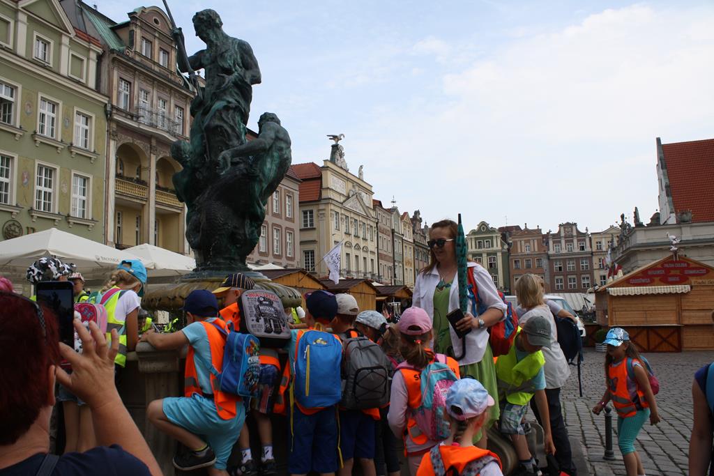 10 czerwca b.r. przedszkolaki i uczniowie klas I- IV wraz z opiekunami aktywnie poznawali niektóre z atrakcyjnych miejsc Poznania. Zaczęli od spaceru po Starym Rynku i obejrzenia najważniejszych tam punktów: ratusza, pomników, fontann, kamieniczek oraz kościoła farnego. Dzieci poznały również legendę o poznańskich koziołkach. Swoją wędrówkę po Starówce zakończyły w Muzeum Rogala Marcińskiego, gdzie wysłuchały krótkiej historii słodkiego wypieku. Mogły także na własne uszy usłyszeć gwarę poznańską i nauczyć się niektórych podstawowych słów, niektórym zresztą dobrze znanych. Dzieci poznały recepturę prawdziwego rogala marcińskiego, a nawet mogły samodzielnie go wykonać wcielając się w rolę cukiernika. Nie obyło się bez wspólnej degustacji. Każdy uczestnik za swoją pracę otrzymał Certyfikat Rogalowego Czeladnika.