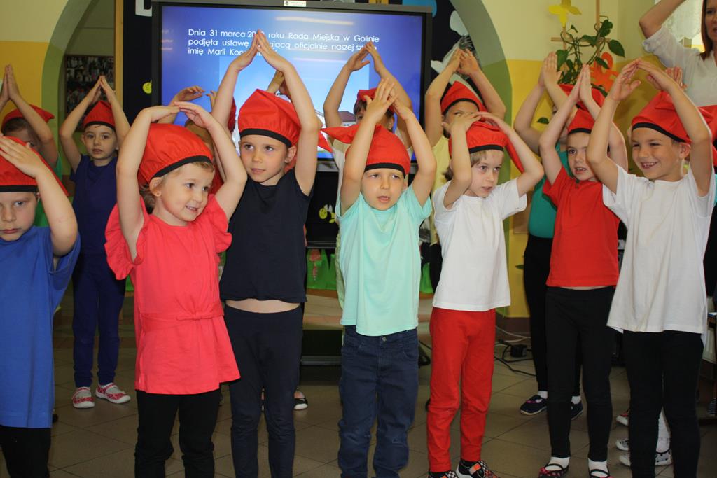 Dzieci z grup przedszkolnych zaprezentowały piosenkę ,,My jesteśmy krasnoludki”.