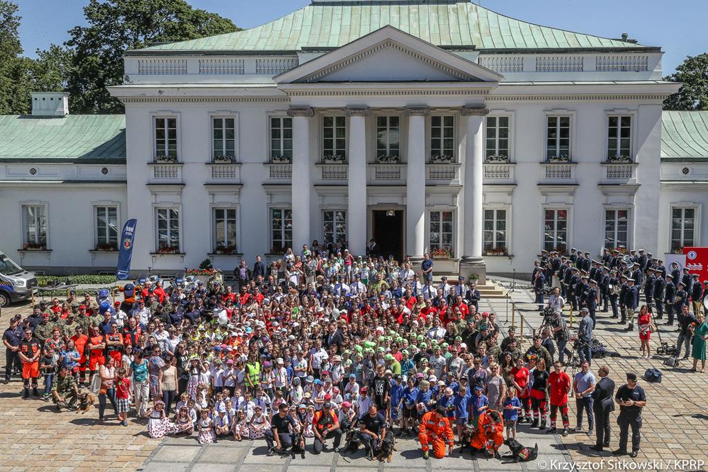 Po ceremonii wręczenia medali, dzieci zgromadzone na placu przed Belwederem, zaśpiewały Parze Prezydenckiej piosenkę o numerach alarmowych przygotowaną przez Komendę Powiatową PSP w Pleszewie. Wszyscy uczestnicy pikniku zostali zaproszeni do wspólnego zdjęcia.
