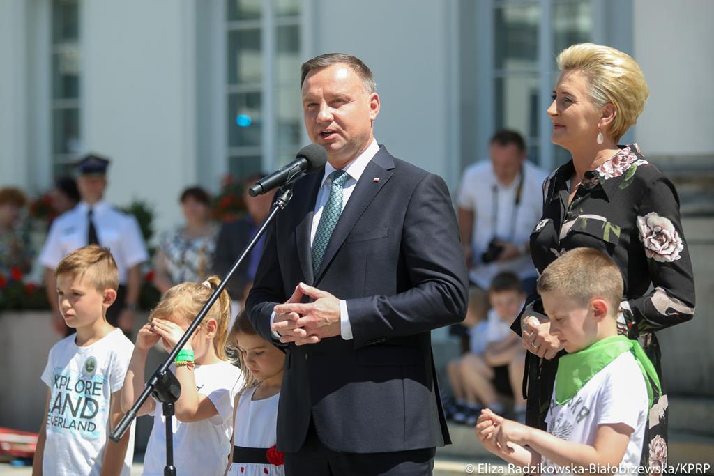 o zabranie głosu. Prezydent Andrzej Duda w swym wystąpieniu podkreślał, jak ważne jest wpajanie dzieciom dbałości o bezpieczeństwo swoje i innych. Wyraził także nadzieję, że dzieci z wypoczynku wrócą szczęśliwe, zadowolone i w komplecie, a po dzisiejszym spotkaniu i po tym, co usłyszeli i zobaczyli, będą w stanie nie tylko uratować innych, ale przede wszystkim będą żyć i funkcjonować bezpiecznie, czasem także zwracać uwagę osobom dorosłym, jeśli są sprawcami jakiś niebezpiecznych sytuacji.