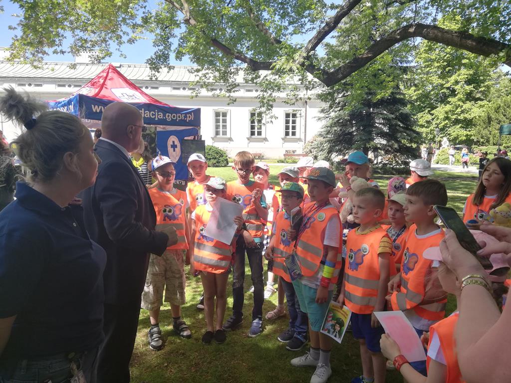 Pierwsza Dama złożyła maluchom życzenia z okazji obchodzonego dwa dni temu Dnia Dziecka. Życzyła dzieciom, by dziecięca ciekawość świata towarzyszyła im jak najdłużej i by mieli możliwość rozwijania swoich talentów. Wyraziła także nadzieję, że życie dzieci będzie bezpieczne i pozbawione zmartwień. Dziękowała za zaangażowanie współorganizatorom pikniku, przedstawicielom różnych służb za pełną poświęcenia pracę na co dzień. Wyrazy podziękowania skierowane zostały także do służb, za to, że oprócz tych codziennych obowiązków dużą wagę przykładają do działalności edukacyjnej, że dzięki przekazywanej przez nich wiedzy dzieci potrafią bezpiecznie zachowywać się w różnych sytuacjach.