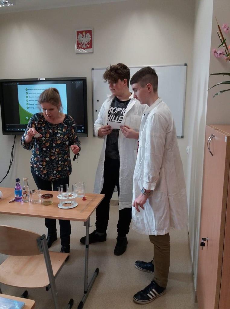 Lekcja pokazowa odbyła się w klasie ósmej na przedmiocie chemia, której tematem było: „Określanie właściwości zastosowania etanolu”. Nauczycielem prowadzącym lekcję była Pani Ewa Wróbel, która na początku lekcji przedstawiła główne jej cele, tj: badanie właściwości etanolu, wskazanie zastosowania etanolu oraz opisanie negatywnych skutków działania etanolu na organizm człowieka.