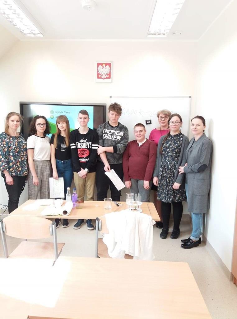 Z kolei nauczyciel zaprezentował film dydaktyczny, dzięki któremu uczniowie dowiedzieli się w jaki sposób wykryć obecność etanolu.