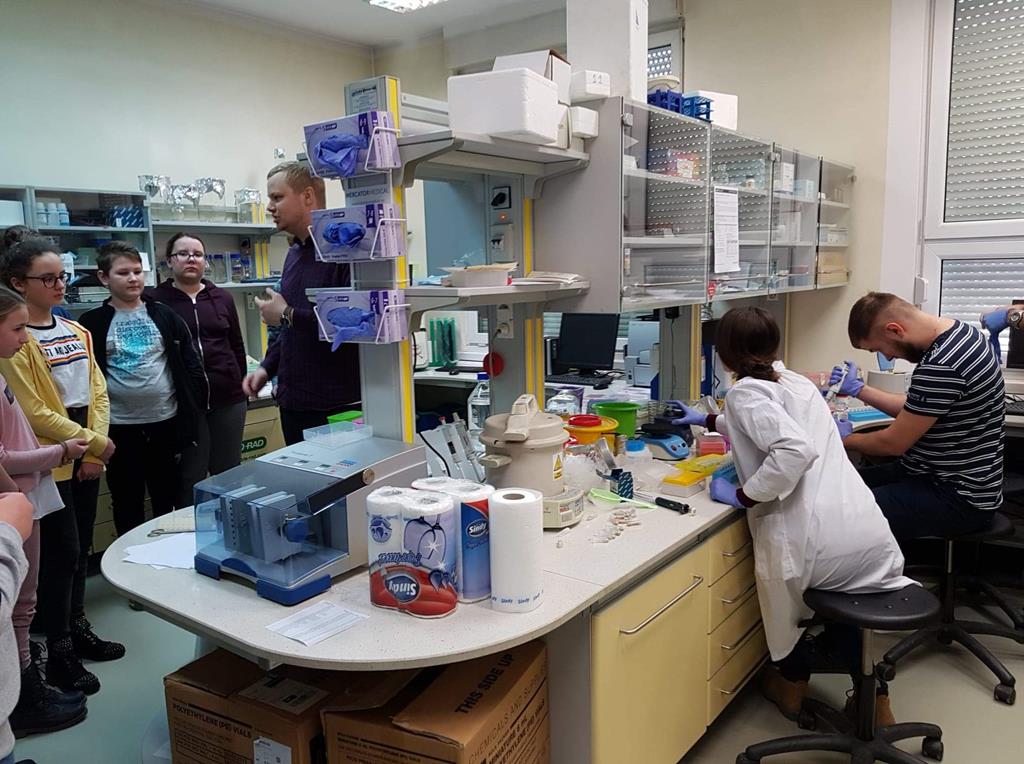 6 lutego 2019r. uczniowie ze szkół podstawowych z Radoliny, Przyjmy, Kawnic i Goliny uczestniczyli w wycieczce naukowej na Wydział Medycyny Weterynarii i Nauki o Zwierzętach Uniwersytetu Przyrodniczego w Poznaniu. Na Wydziale przywitał nas prof. dr hab. Adam Cieślak, który wygłosił wykład na temat pierwotniaków. Następnie uczniowie wykonywali preparaty pod mikroskopem, obserwowali komórki pierwotniaków i barwili płytki szkieletowe. Po tej części laboratoryjnej młodzież zwiedziła Katedrę Fizjologii i Biochemii Zwierząt. Uczestnicząc w wykładzie prowadzonym przez dr Ewę Pruszyńską – Oszmałek i dr Pawła Kołodziejskiego dowiedzieliśmy się min. jaką funkcję pełni trzustka i żółć w organizmie oraz na czym polega metabolizm. W części doświadczalnej młodzież badała ciśnienie oraz wpływ żółci w organizmie na trawienie tłuszczów. Uczniowie pracując w laboratorium, choć przez chwilę mogli poczuć się jak „prawdziwi studenci”.