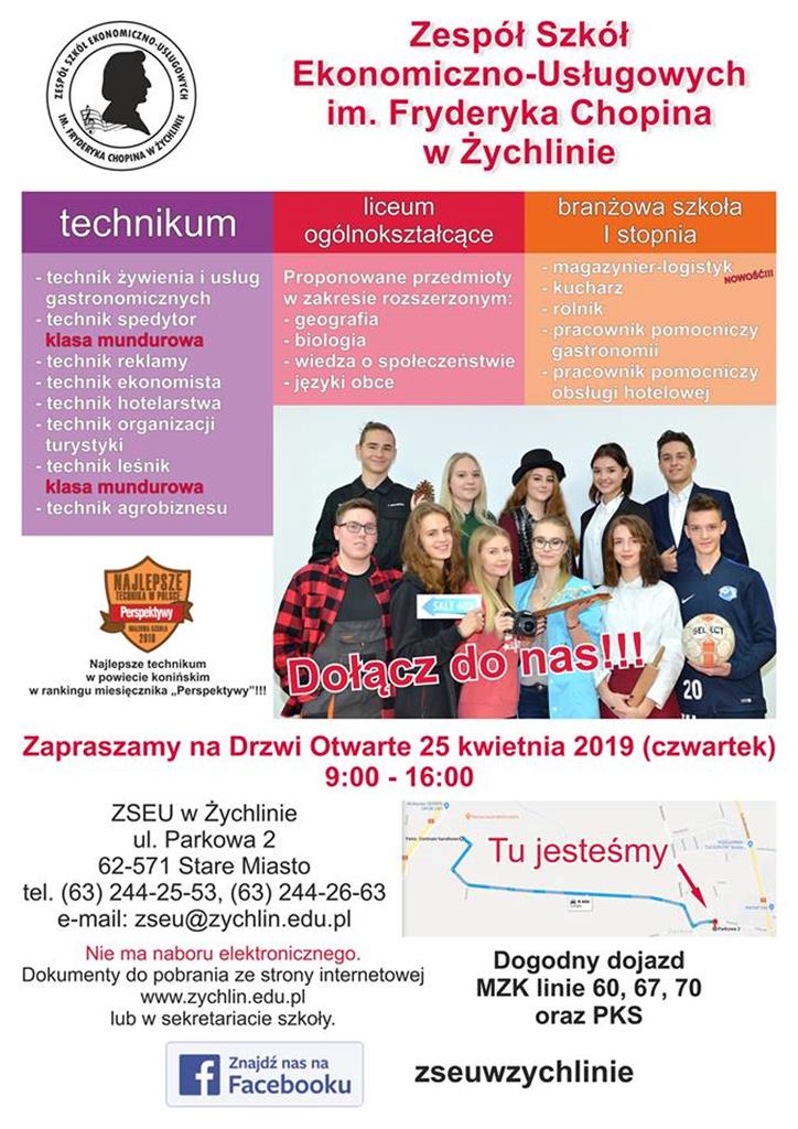 Nasi uczniowie mieli okazję porozmawiać ze starszymi kolegami na temat ich szkoły i rozwiania wszelkich wątpliwości, a także obaw. Uzyskaliśmy wiele cennych informacji na temat nauki w technikum, liceum i szkole branżowej, a także dowiedzieliśmy się, że Fundacja Edukacyjna „Perspektywy” potwierdziła, iż Technikum w Zespole Szkół Ekonomiczno-Usługowych im. Fryderyka Chopina w Żychlinie jest wśród 500 najlepszych techników w Polsce sklasyfikowanych w Rankingu Liceów i Techników PERSPEKTYWY 2019 i otrzymało tytuł „Brązowej Szkoły 2019”. Gratulujemy!