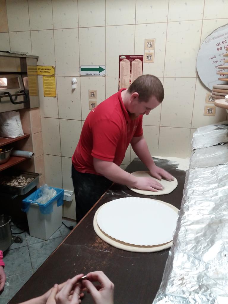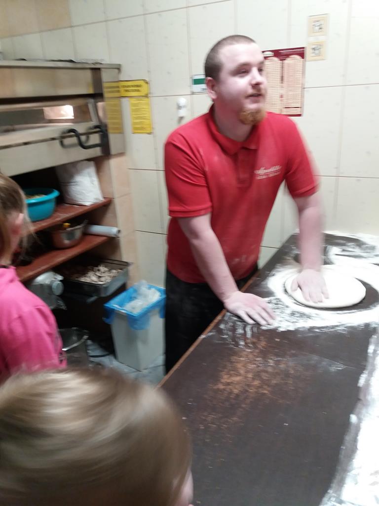 Uczniowie klasy IV wraz z wychowawcą postanowili dowiedzieć się na czym polega praca pizzermana. W związku z tym, po zajęciach dydaktycznych udali się do pizzerii, aby przeprowadzić wywiad z przedstawicielem tego zawodu i poznać tajniki wypiekania pizzy, czyli tradycyjnego włoskiego dania.
