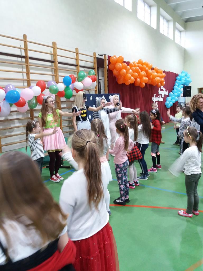 Zabawę choinkową przygotowali nauczyciele we współpracy z Radą Rodziców i samorządem uczniowskim . Pięknie udekorowana sala przez całe piątkowe popołudnie była sceną tańców, zabaw i swawoli uczestników tej lubianej i wyczekiwanej imprezy . Były konkursy, zabawy, kącik z loterią fantową ,z której losy rozeszły się jak świeże bułeczki, sklepik prowadzony przez uczniów z samorządu uczniowskiego oraz mini kafejka dla amatorów kawy i słodkiego co nie co. O nastroju panującym na sali poświadczą zdjęcia, a nam pozostaje podziękować wszystkim tym, którzy brali udział w przygotowaniach do zabawy i jej obsłudze. Już teraz zapraszamy za rok, życząc w jego trakcie, równie pozytywnych wrażeń!