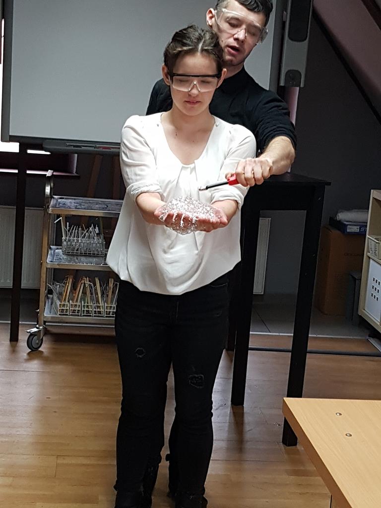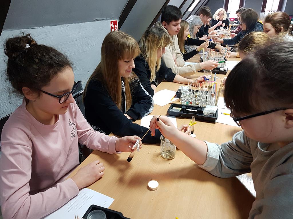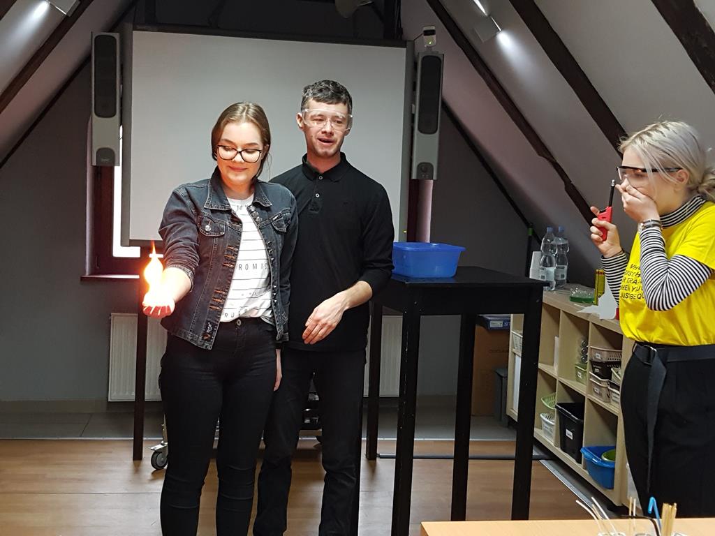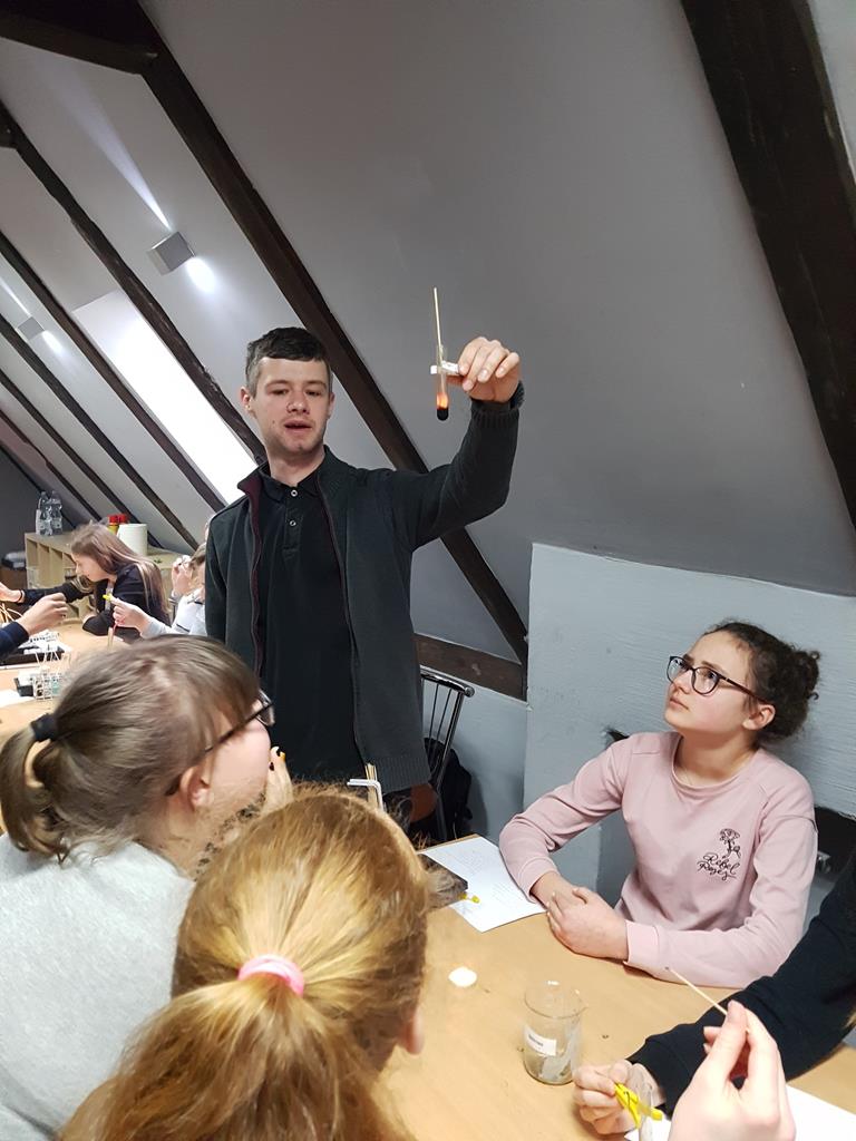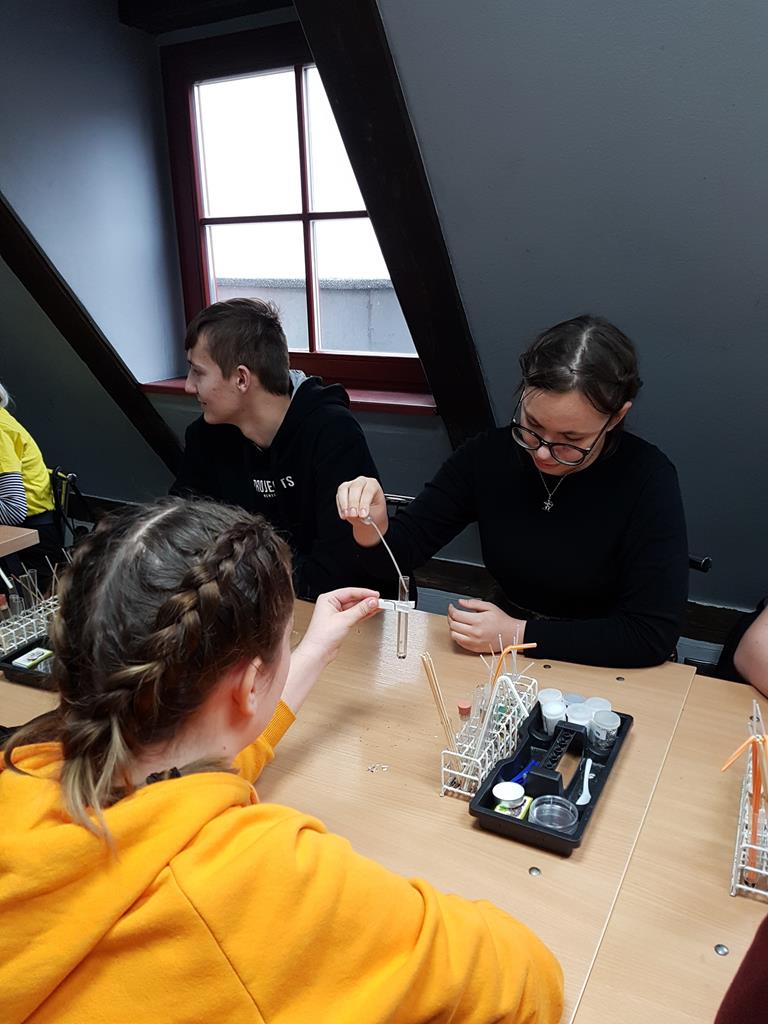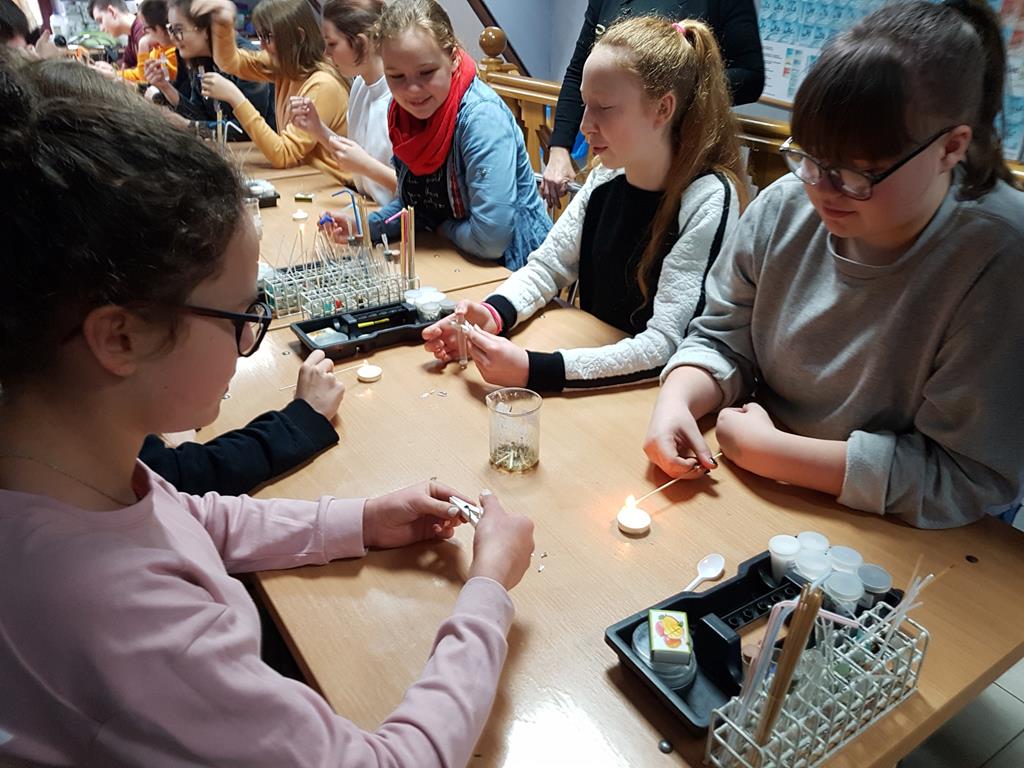 21 stycznia 2019r. w ramach zajęć projektowych grupa uczniów szkół podstawowych z Goliny, Przyjmy i Radoliny uczestniczyła w wycieczce do Torunia, zorganizowanej przez p. Urszulę Jeziorną. Opiekę nad młodzieżą sprawowały: p. Ewa Wróbel, p. Bogumiła Kowalska oraz p. Anna Neneman - Koprowska. W programie zaplanowane były warsztaty chemiczne w Centrum Chemii w Małej Skali, podczas których młodzi naukowcy samodzielnie przeprowadzali doświadczenia chemiczne. Można było sprawdzić zmianę barwy wskaźników, zbadać właściwości kilku gazów, zidentyfikować substancje na drodze reakcji strącania osadów, dokonać rozdzielenia mieszaniny metodą destylacji. Wiele niezapomnianych wrażeń wywołał pokaz efektownych eksperymentów chemicznych. Było kolorowo i wybuchowo! Uczniowie własnoręcznie wykonali zapachową świecę, używając oryginalnych produktów, dodając wybrane zapachy, barwniki i ozdoby. Na sam koniec wycieczki zwiedziliśmy Starówkę i zakupiliśmy toruńskie pierniki.